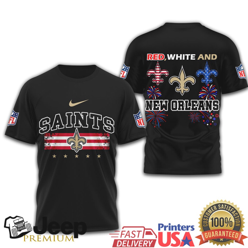 👕 About New Orleans Saints Patriotic July 4th Fleur de lis Stars & Stripes T Shirt