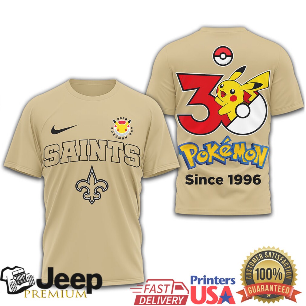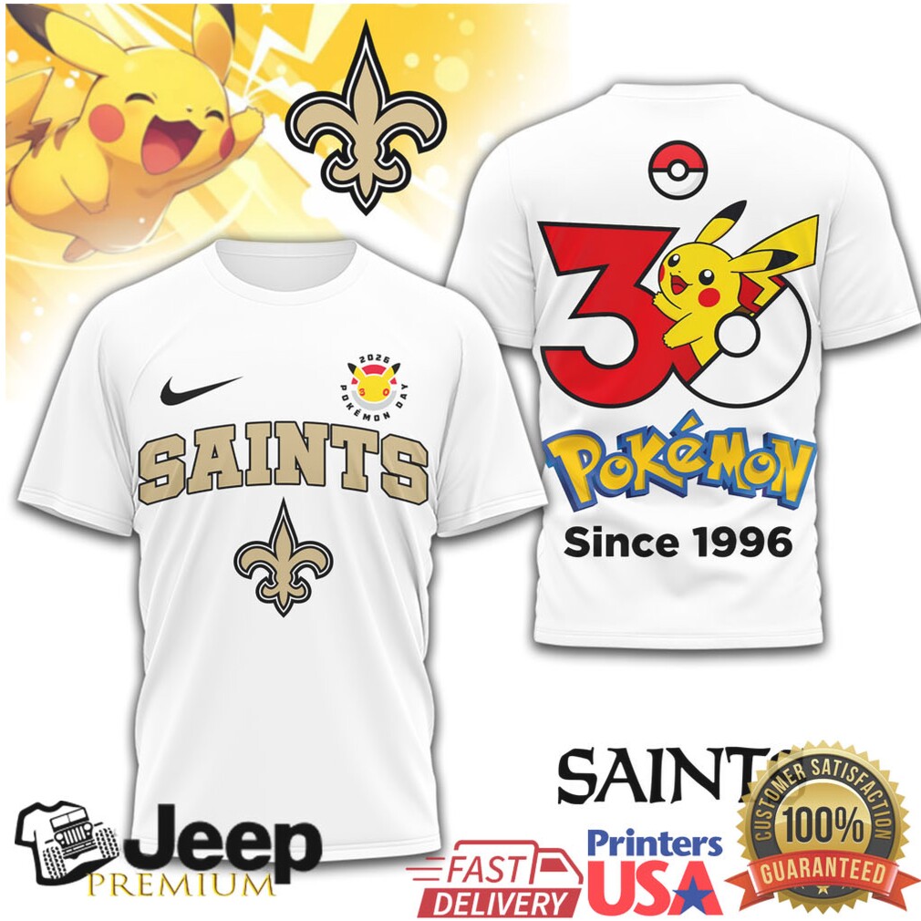 👕 About New Orleans Saints x Pokémon 30th Anniversary Pikachu T Shirt Since 1996