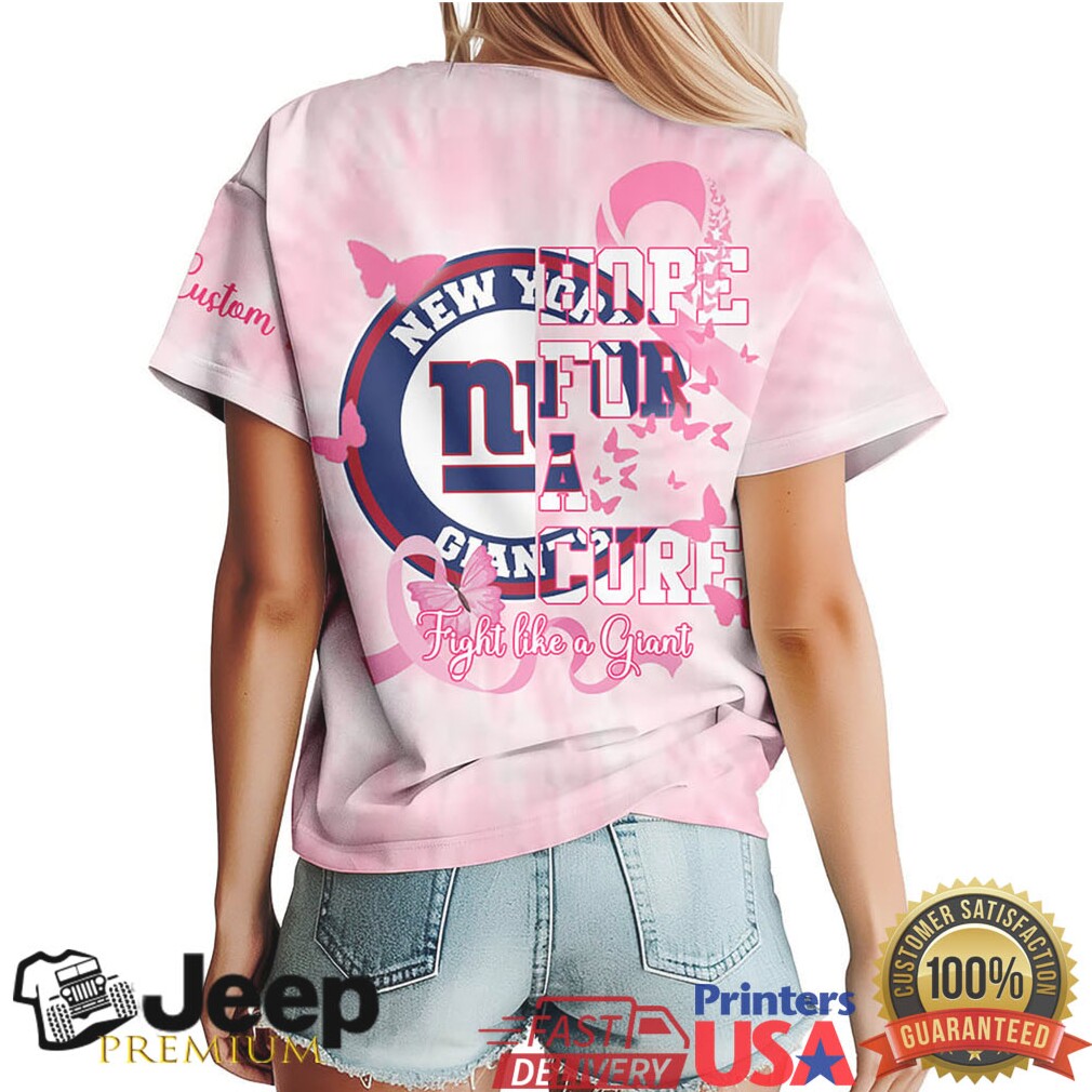 The physics of “The Butterfly Stroke” and the “Coupled Motion” makes it the most exhausting and technically complex swimming stroke. It relies on the “Dolphin Kick,” which is generated from the core, not the knees. The stroke is defined by a “double peak” velocity curve: one peak occurs during the underwater “pull” and the second during the downward phase of the kick. Because both arms move simultaneously, the body undergoes massive New York Giants Pink Ribbon Breast Cancer Awareness Custom Tie Dye Shirt. The key to elite performance is minimizing this oscillation; if the chest sinks too deep, form drag increases exponentially. The best swimmers keep their movement “flat,” undulating just enough to clear the surface for air while maintaining a constant forward plane.