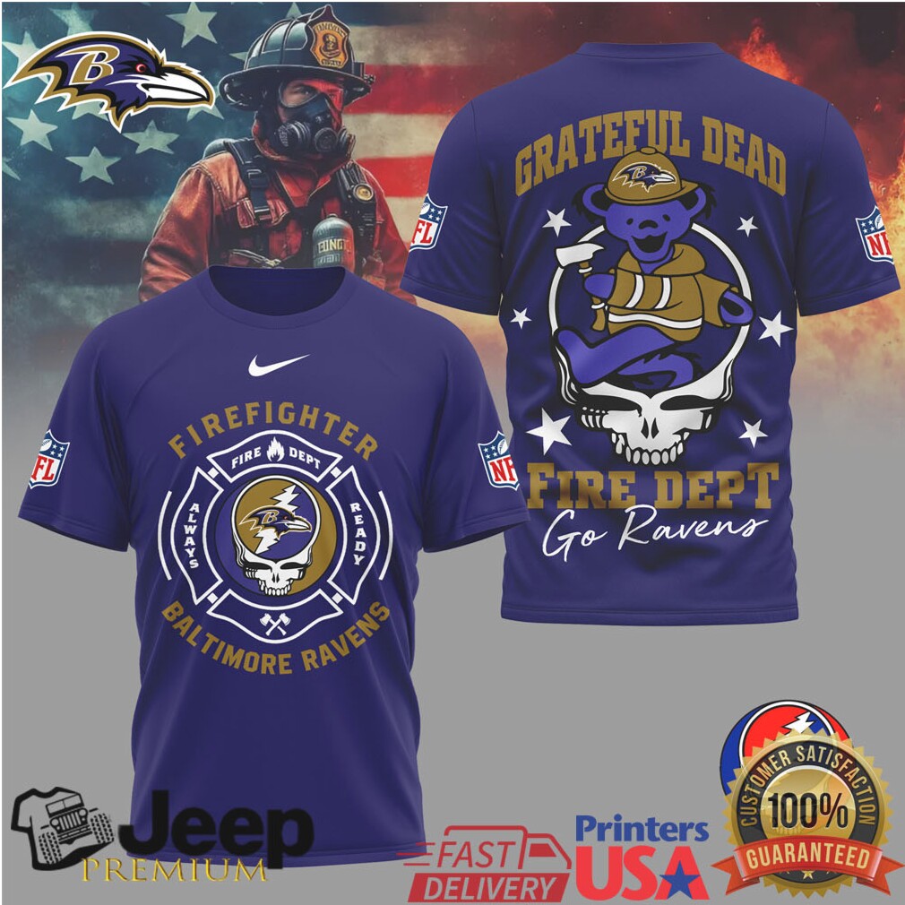 ()NFL Baltimore Ravens Firefighter Grateful Dead Skull & Bear Design Shirt, Treat yourself or make a great gift for your loved ones