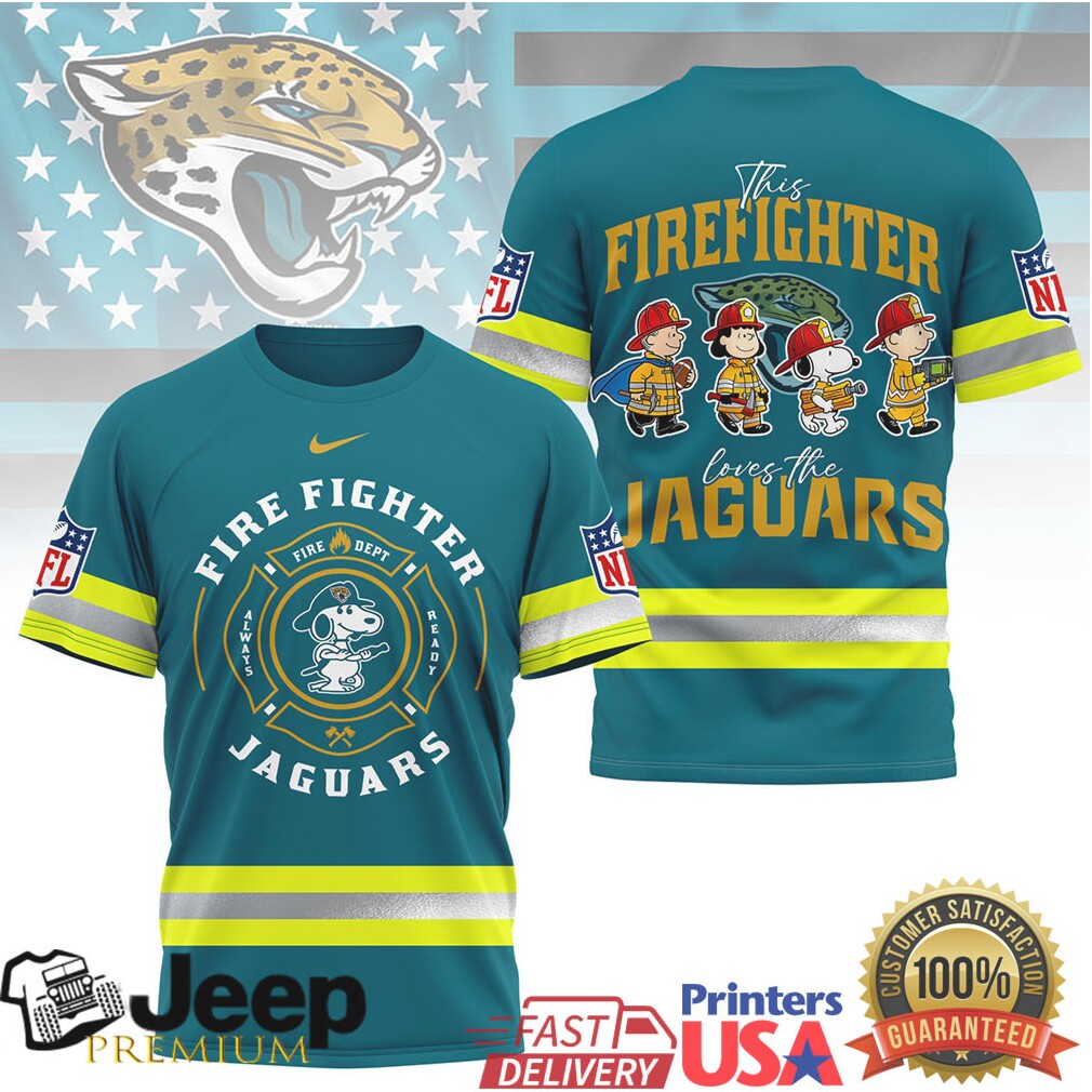 ()NFL Jacksonville Jaguars Firefighter Snoopy Peanuts Fire Dept Shirt, Treat yourself or make a great gift for your loved ones