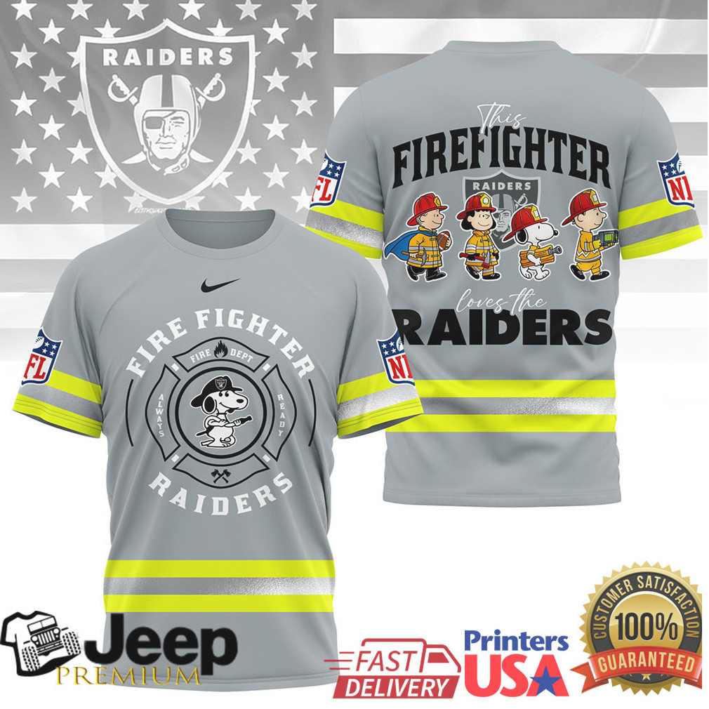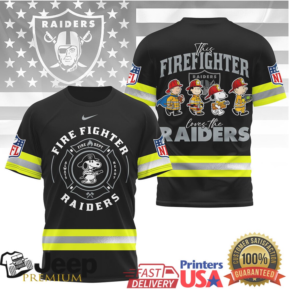 ()NFL Las Vegas Raiders Firefighter Snoopy Peanuts Squad Graphic Tee, Treat yourself or make a great gift for your loved ones