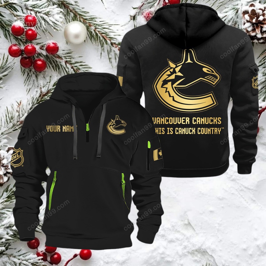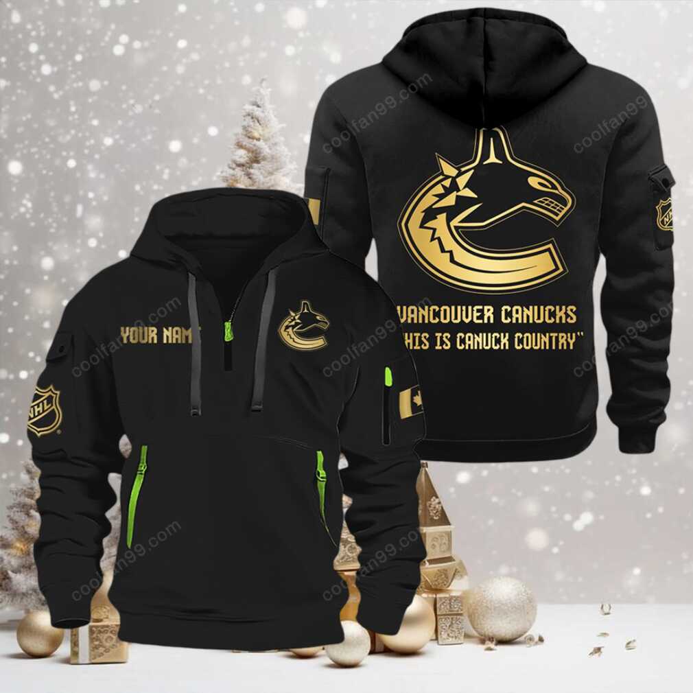 👕 About NHL Vancouver Canucks Gold Logo Quarter 2026 Zip Hoodie