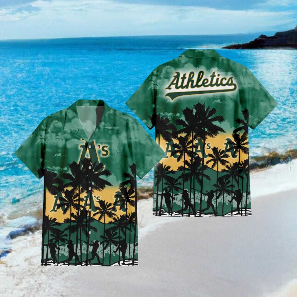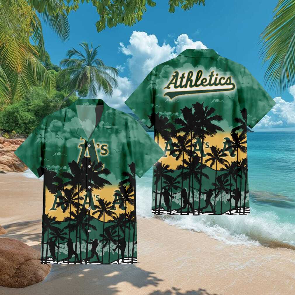 (Oakland Athletics MLB Green Tropical Hawaiian Shirt Palm Tree & Baseball Player)Oakland Athletics MLB Green Tropical Hawaiian Shirt Palm Tree & Baseball Player, Treat yourself or make a great gift for your loved ones