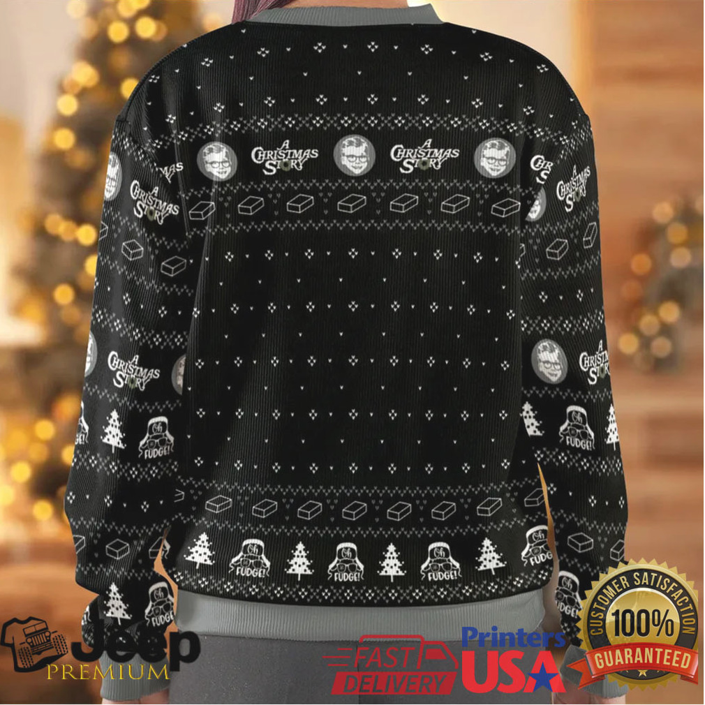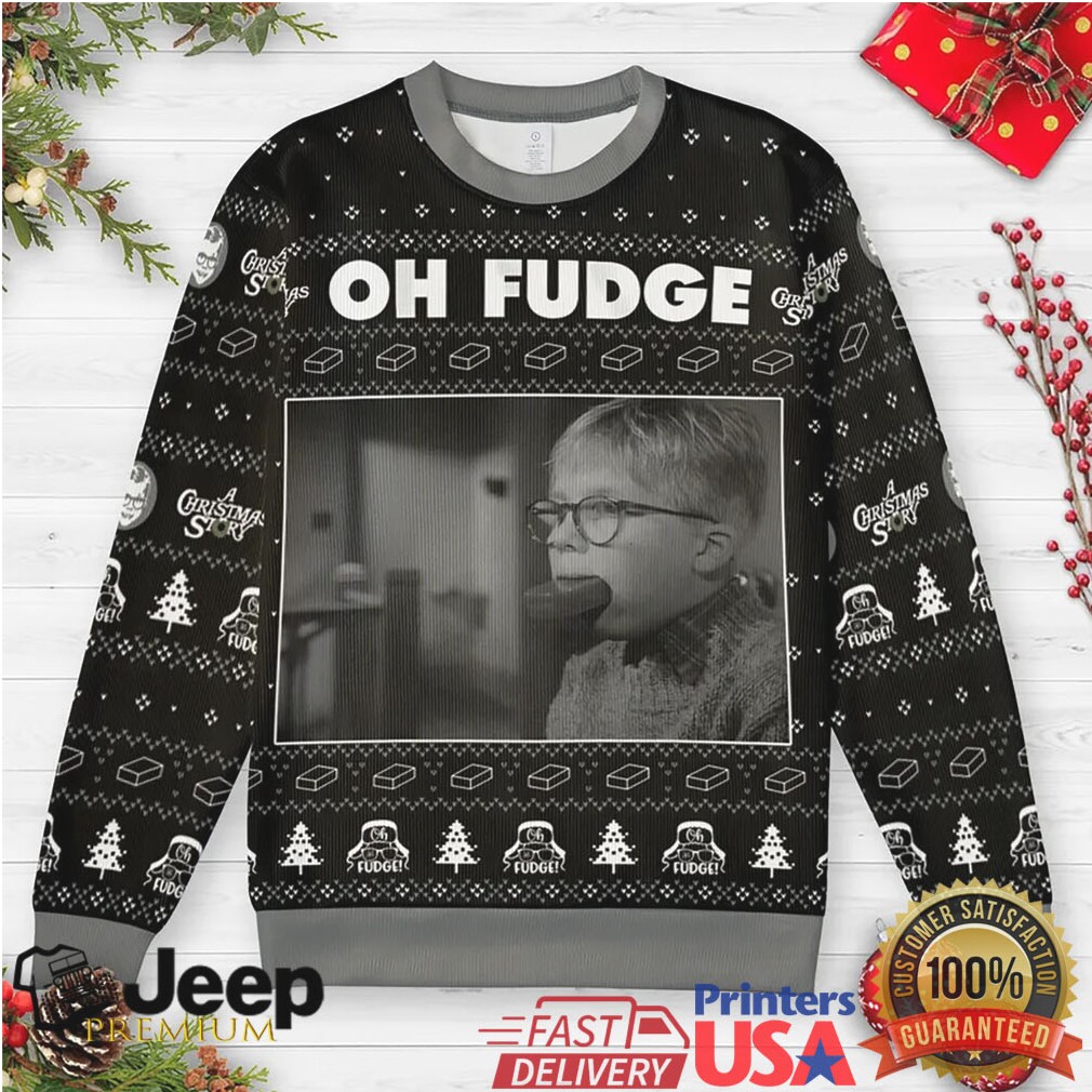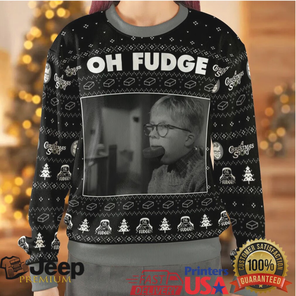 The Oh Fudge Ugly Christmas Sweatshirt is ideal for die-hard fans of A Christmas Story, anyone looking for a genuinely funny ugly Christmas sweater, or those who simply enjoy spreading holiday cheer with a touch of humor. It makes a fantastic gift for friends, family members, or colleagues who cherish the film and appreciate unique, conversation-starting apparel. Wear it to holiday office parties, family dinners, or while enjoying a cozy night in. As showcased in the second image, this sweatshirt is a fantastic way to show off your festive spirit and love for classic cinema.