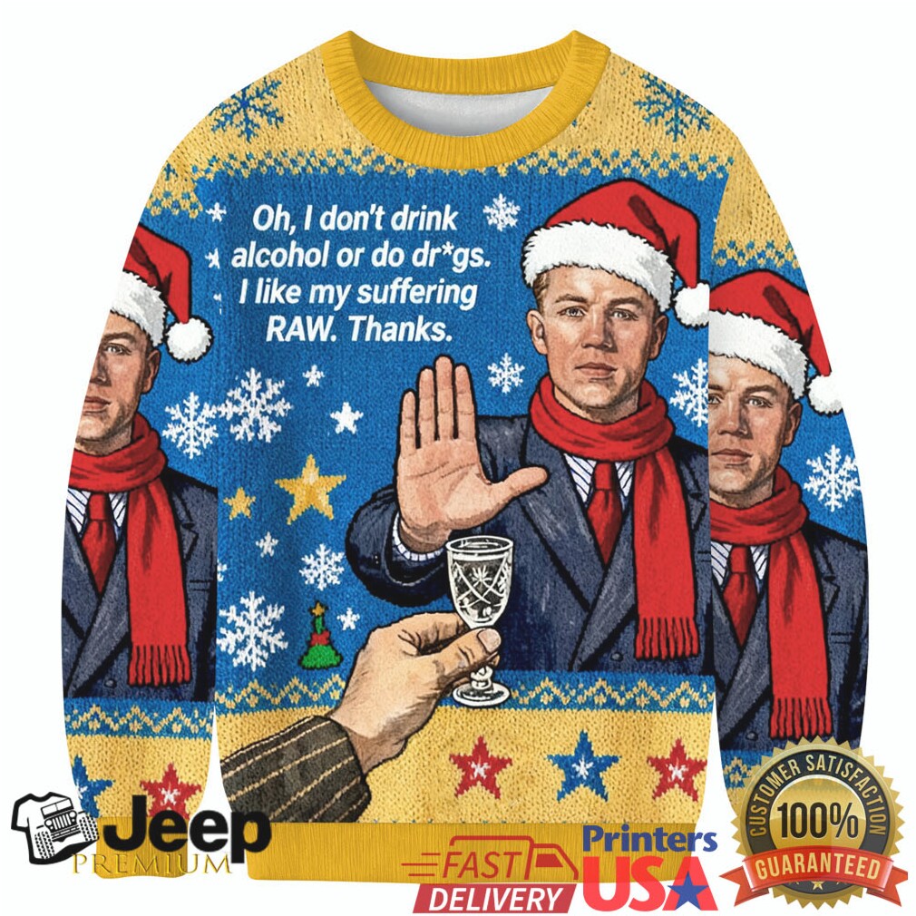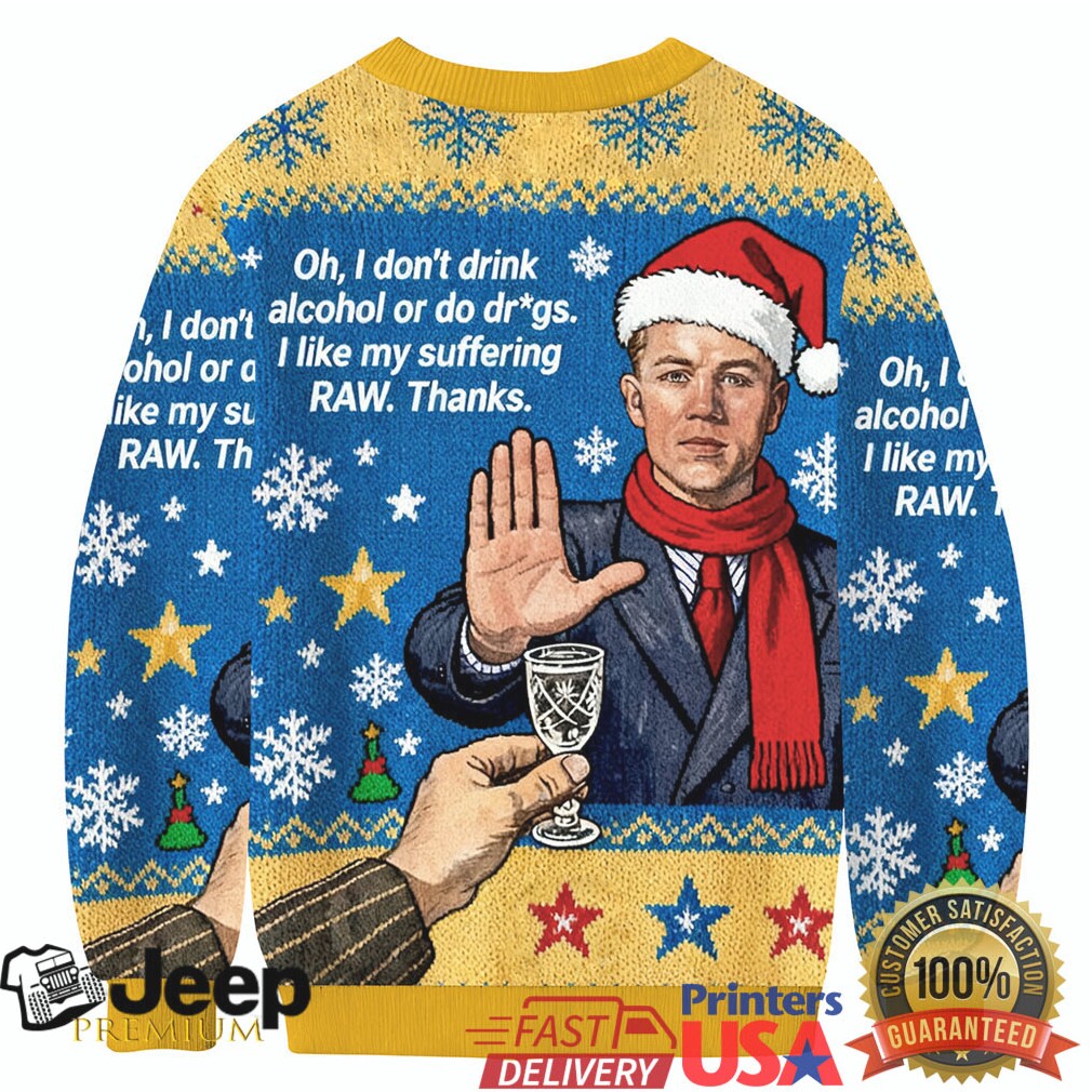 👕 About Oh, I Don't Drink Alcohol Or Do Drgs.I like My Suffering RAW. Thanks. Christmas Ugly Sweatshirt