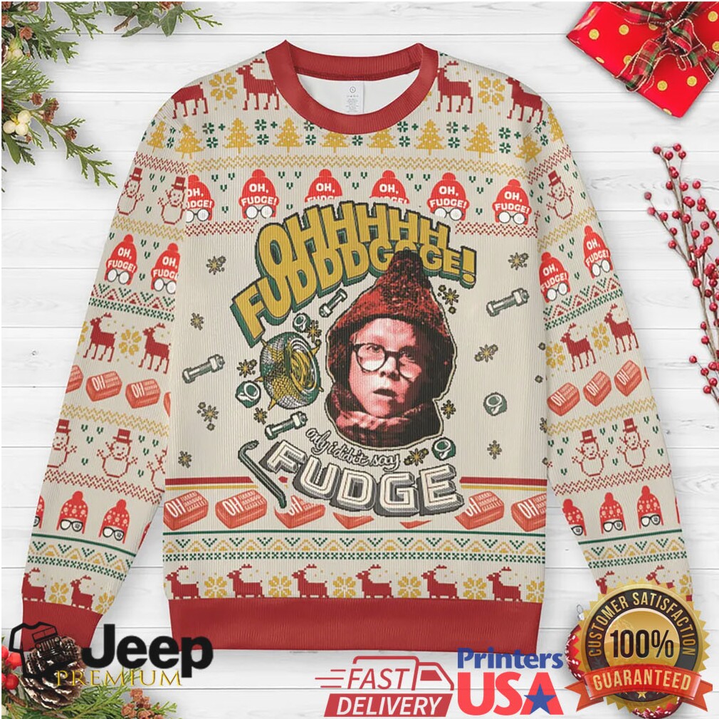 The Ohh Fudge Ugly Christmas Sweatshirt is ideal for die-hard fans of A Christmas Story, anyone looking for a genuinely funny ugly Christmas sweater, or those who simply enjoy spreading holiday cheer with a touch of humor. It makes a fantastic gift for friends, family members, or colleagues who cherish the film and appreciate unique, conversation-starting apparel. Wear it to holiday office parties, family dinners, or while enjoying a cozy night in. As showcased in the second image, this sweatshirt is a fantastic way to show off your festive spirit and love for classic cinema.