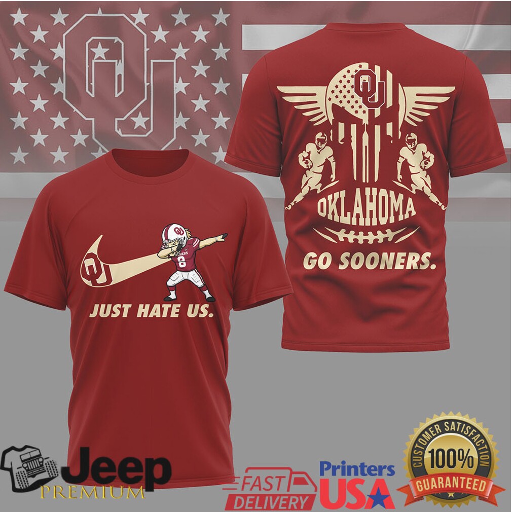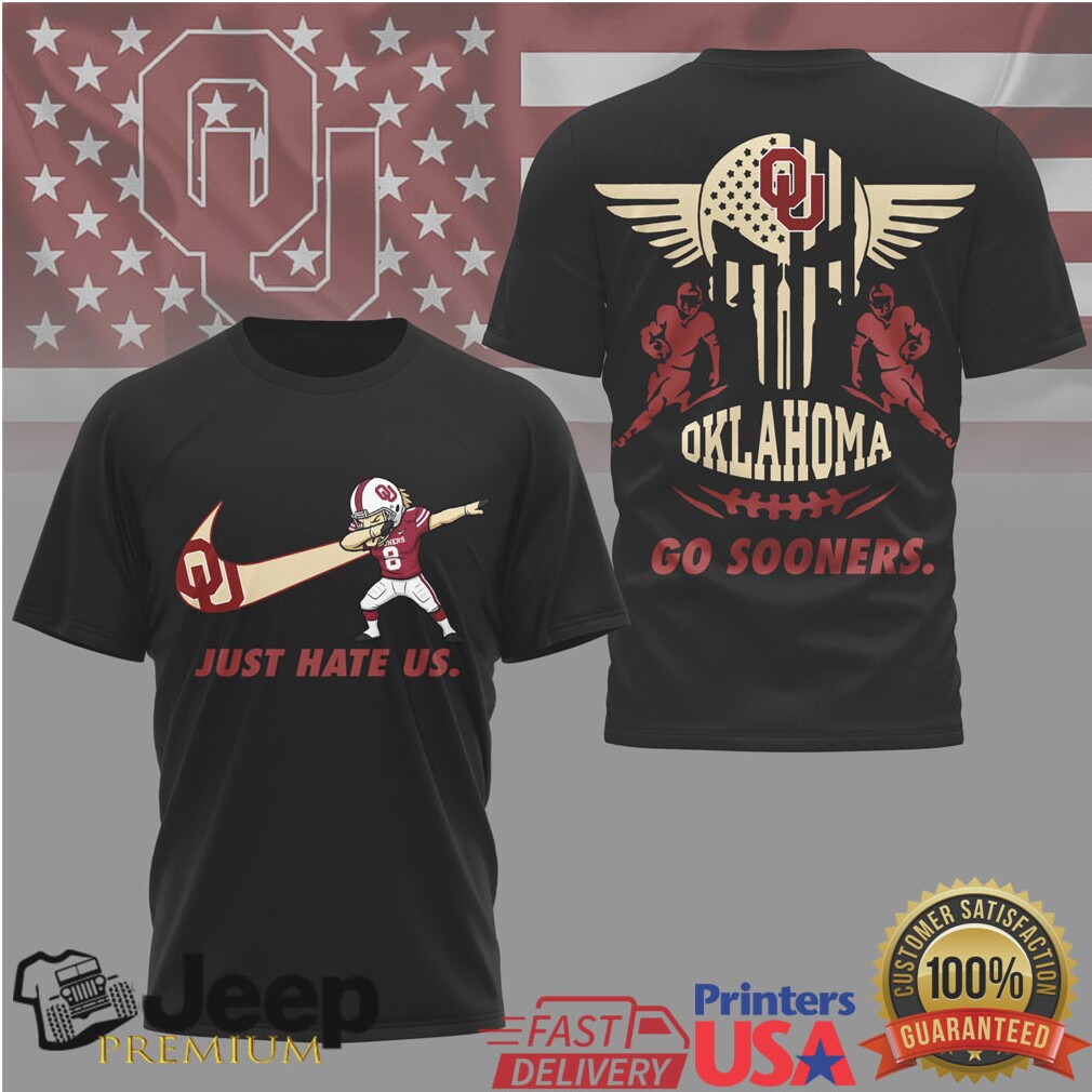 (Oklahoma Sooners Just Hate Us Dabbing Mascot American Flag Skull T Shirt)