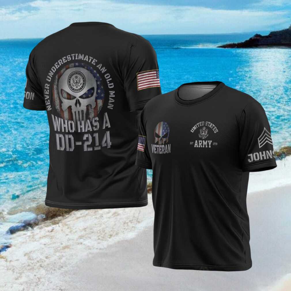 ()Old Man US Army Veteran DD 214 Punisher Skull Personalized Black T Shirt, Treat yourself or make a great gift for your loved ones