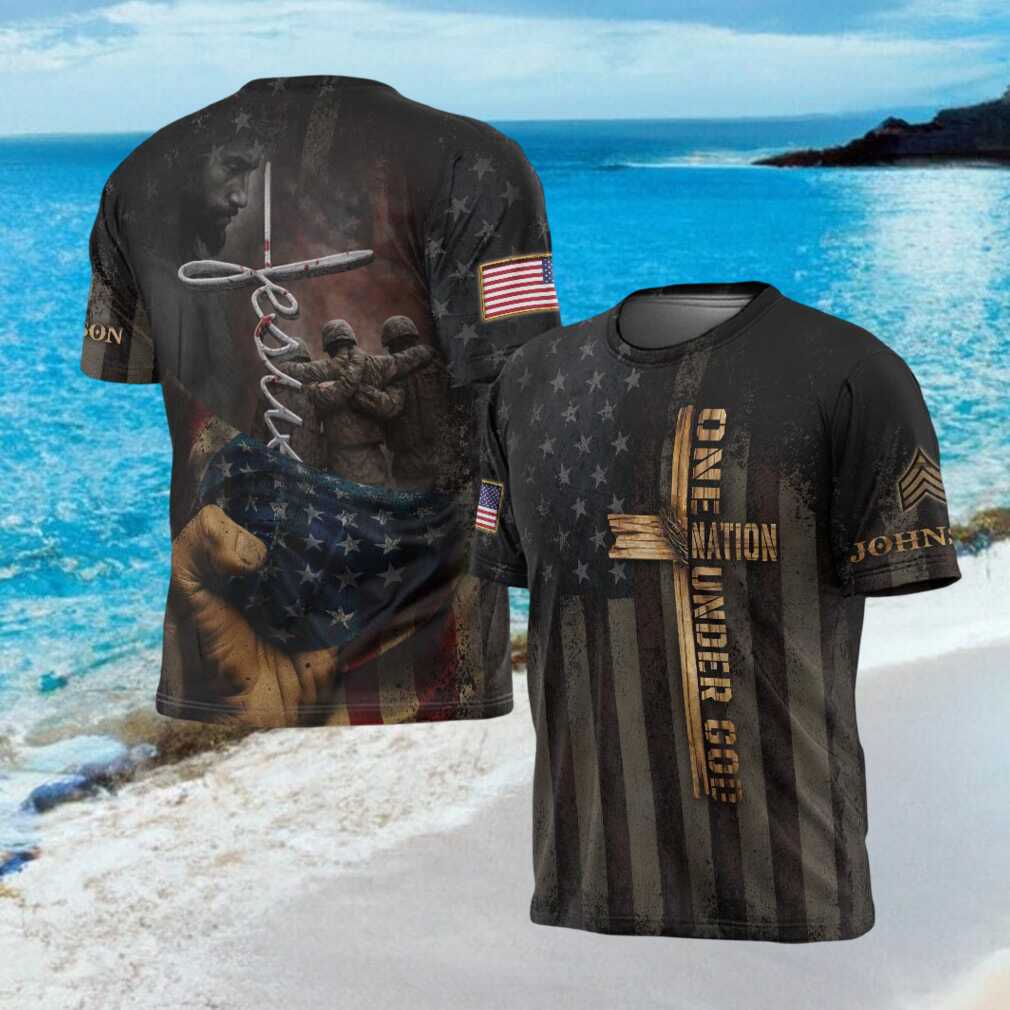 ()One Nation Under God Jesus & Soldiers American Flag Patriotic T Shirt, Treat yourself or make a great gift for your loved ones