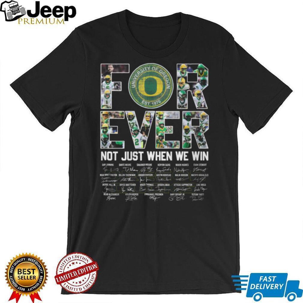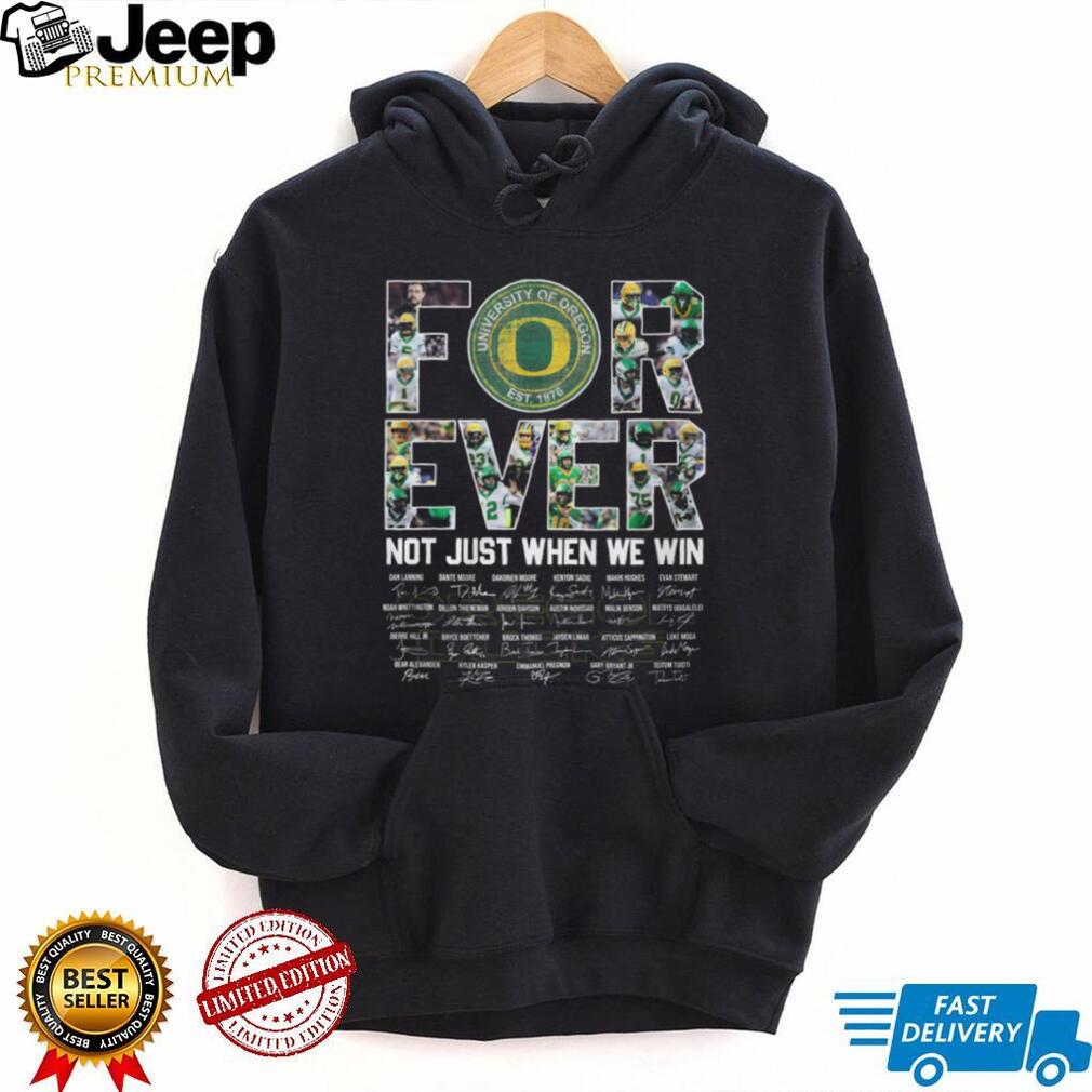 Unlike other cities on this list, San Diegoans don’t have to prove they’re football lovers. The city was home to the popular Chargers franchise for 56 years—until owner Dean Spanos moved it to Los Angeles because citizens voted down paying for a new stadium. San Diego is a good candidate for teams that want to relocate, but the eighth-largest city in the country may have to wait for the NFL to announce an expansion and new Oregon Ducks Forever Not Just When We Win Signature T Shirt designs to get another football team. In 2025, the NFL will stage up to eight games outside the U.S., including its first in Spain. Its teams also have rights in 19 international markets. Other candidates include Columbus (2.2M population), Salt Lake City (1.3M population), and Sacramento (2.4M population). The Raiders, a team that’s called Oakland, Los Angeles, and—since 2020—Las Vegas home, almost became the Sacramento Raiders in the 1990s. Team owner Al Davis wanted to move the squad out of LA, and Sacramento was on board, but they couldn’t make a deal work.