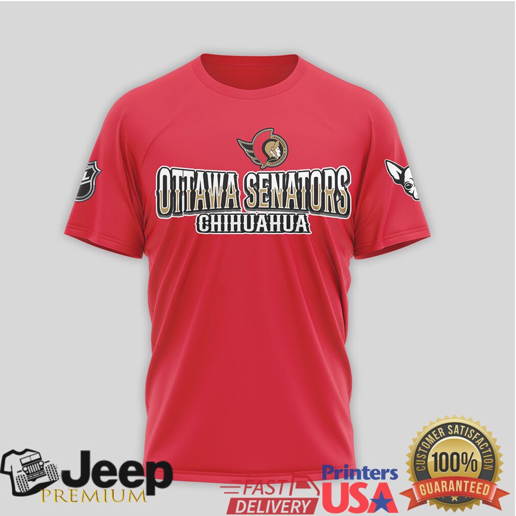 Tiny dog. Big attitude. This hilarious Ottawa Senators ‘Chihuahua I Choose Violence’ tee is perfect for hockey fans with a sense of humor. Featuring a fierce chihuahua rocking Ottawa Senators gear, this shirt captures the chaos-loving spirit of a true hockey fan. Lightweight, comfortable, and guaranteed to get laughs in the stands. A perfect gift for the unhinged NHL fan in your life.