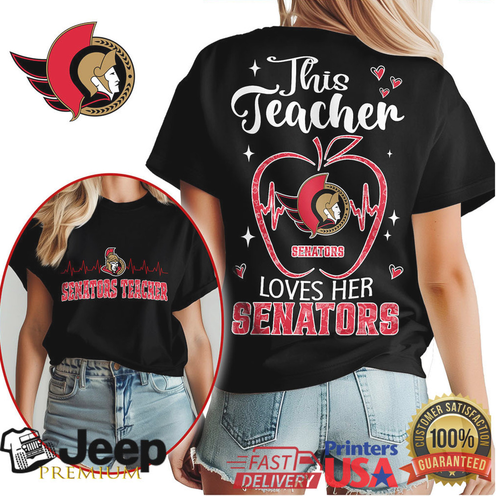 ()Ottawa Senators This Teacher Loves Her Senators Back & Front Print T Shirt, Treat yourself or make a great gift for your loved ones