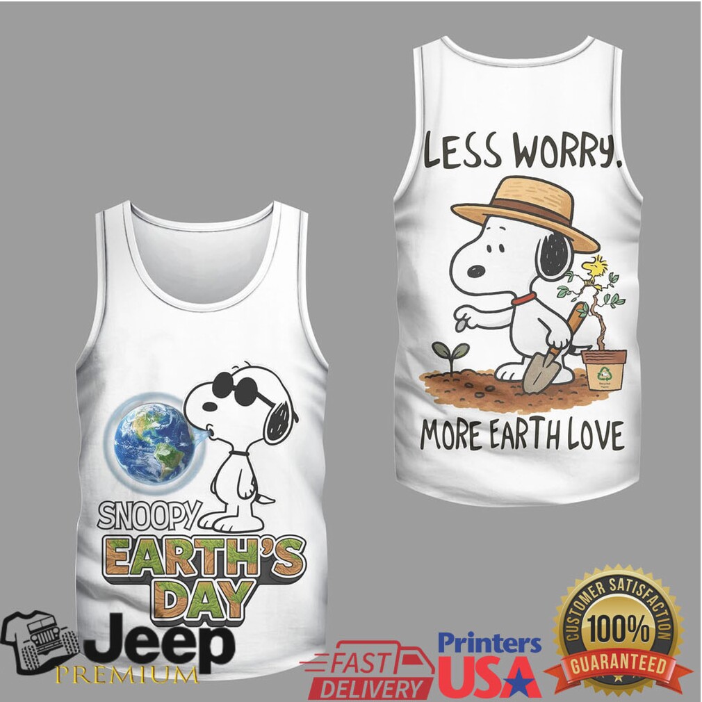 (Peanuts Snoopy Earth Day Less Worry More Earth Love Gardening T Shirt)