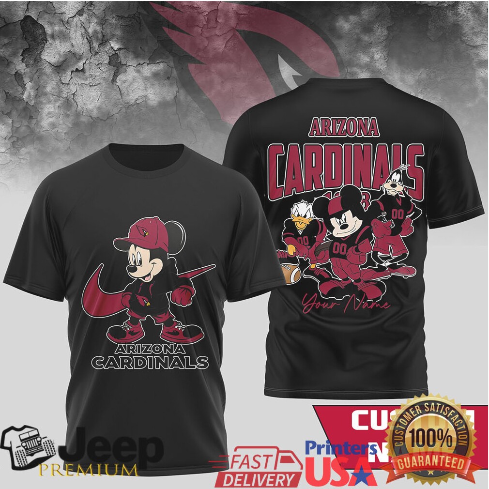 (Personalized Arizona Cardinals Mickey & Friends NFL Fan T Shirt)In the NBA, the Oklahoma City Thunder have officially become the first team in the Western Conference to clinch a playoff spot, a testament to their flawless rebuilding process, complete with fan Personalized Arizona Cardinals Mickey & Friends NFL Fan T Shirt to match. Sitting at 55-15, the Thunder have utilized a 10-game winning streak to distance themselves from a chaotic pack of contenders that includes the Lakers, Spurs, and Timberwolves. Shai Gilgeous-Alexander continues to defy logic, extending his streak of 20-point games to an NBA-record 130 straight contests, a level of consistency that has made him the frontrunner for the 2026 MVP. The Thunder’s success, celebrated in championship Personalized Arizona Cardinals Mickey & Friends NFL Fan T Shirt, is built on a foundation of elite perimeter defense and a “positionless” offensive scheme that allows multiple playmakers to thrive simultaneously. For the rest of the West, the Thunder represent a terrifyingly deep and disciplined opponent that is finally ready to translate regular-season success into a deep playoff run.