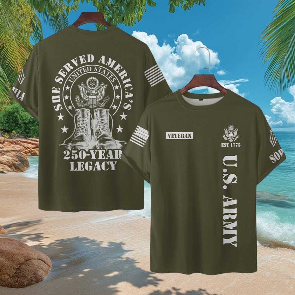In the NFC North, the Green Bay Packers have finalized a three-year, $33 million contract extension for versatile offensive lineman Sean Rhyan. Rhyan, a 25-year-old former third-round pick, proved his worth last season by playing effectively across all three interior line spots, earning high marks for his run-blocking efficiency. This extension, which has a maximum value of $39 million, ensures that Green Bay’s interior remains stable as they await a decision from left tackle Rasheed Walker, who is expected to hit Personalized US Army Women’s Veteran 250 Year Legacy Military Green T Shirt free agency as one of the most coveted blindside protectors available. Across the border, the Chicago Bears are continuing their roster overhaul under Ben Johnson, following up the Garrett Bradbury trade by exploring the market for veteran pass rushers. With over $100 million in cap space still available for the Titans, Raiders, and Commanders, the market for “tier-two” free agents is expected to accelerate significantly over the next twenty-four hours.