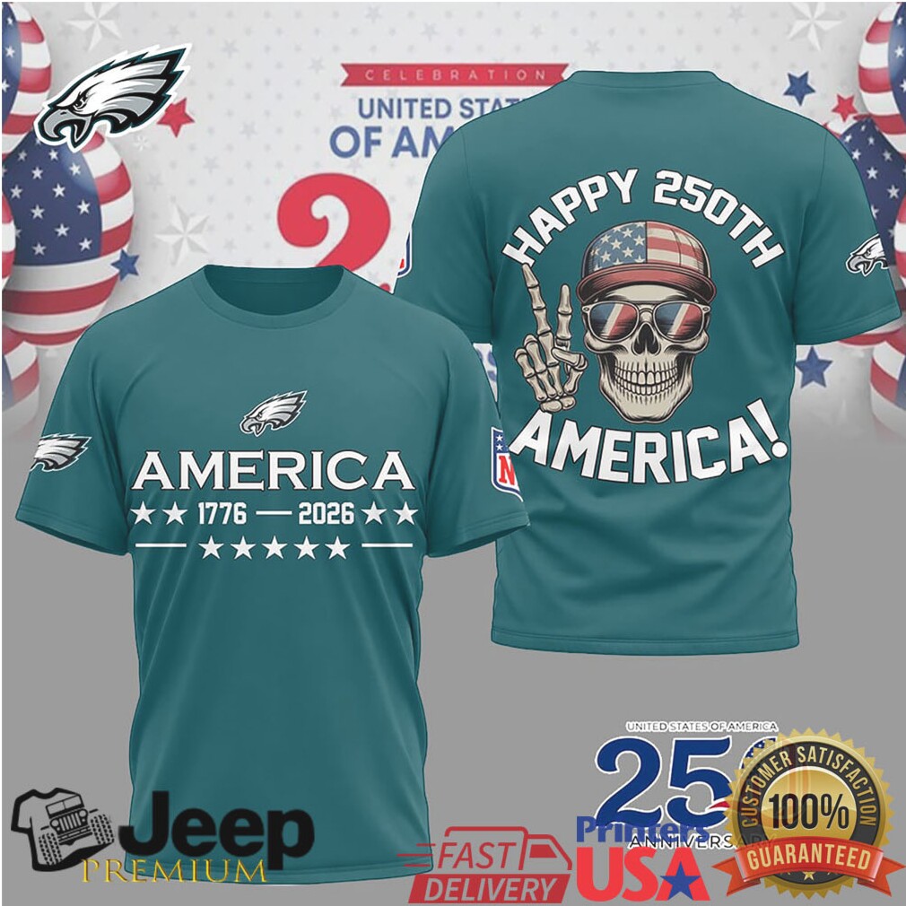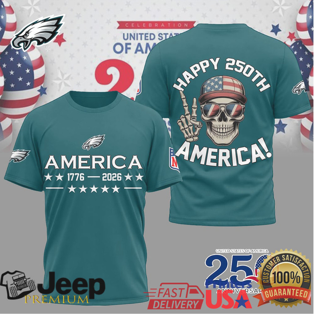 (Philadelphia Eagles Happy 250th Anniversary America 1776 2026 Teal T Shirt)FIFA recently voted to expand the World Cup from its current format of 32 teams. There were five proposals on the table, from which Fifa’s 37-member council voted unanimously to increase the tournament to 48 nations. The expansion will kick in from the 2026 World Cup. The bulk of the additional 16 places go to Africa and Asia. Europe could get an additional three places on top of their current 13. This isn’t being decided today though. Format will see 16 groups of three countries, with the top two advancing to the knock-out phase. Number of games increases from 64 to 80. To this observer the finals tournament of 2026 is too big. Everyone being invited to the party because it’s ‘fair’ does nothing for quality and I predict a tournament largely of dross no better than a European tier three league game, interspersed with Philadelphia Eagles Happy 250th Anniversary America 1776 2026 Teal T Shirt. The WC finals are supposed to be for the elite and whilst the logistical organisation will be as good as we would expect from the US, the concept and structure are an example of how to bloat matters beyond being reasonable.