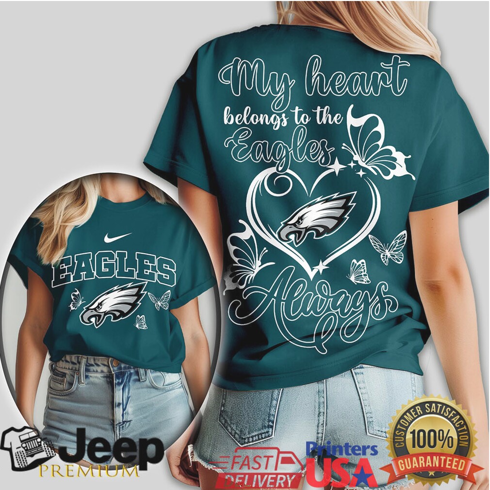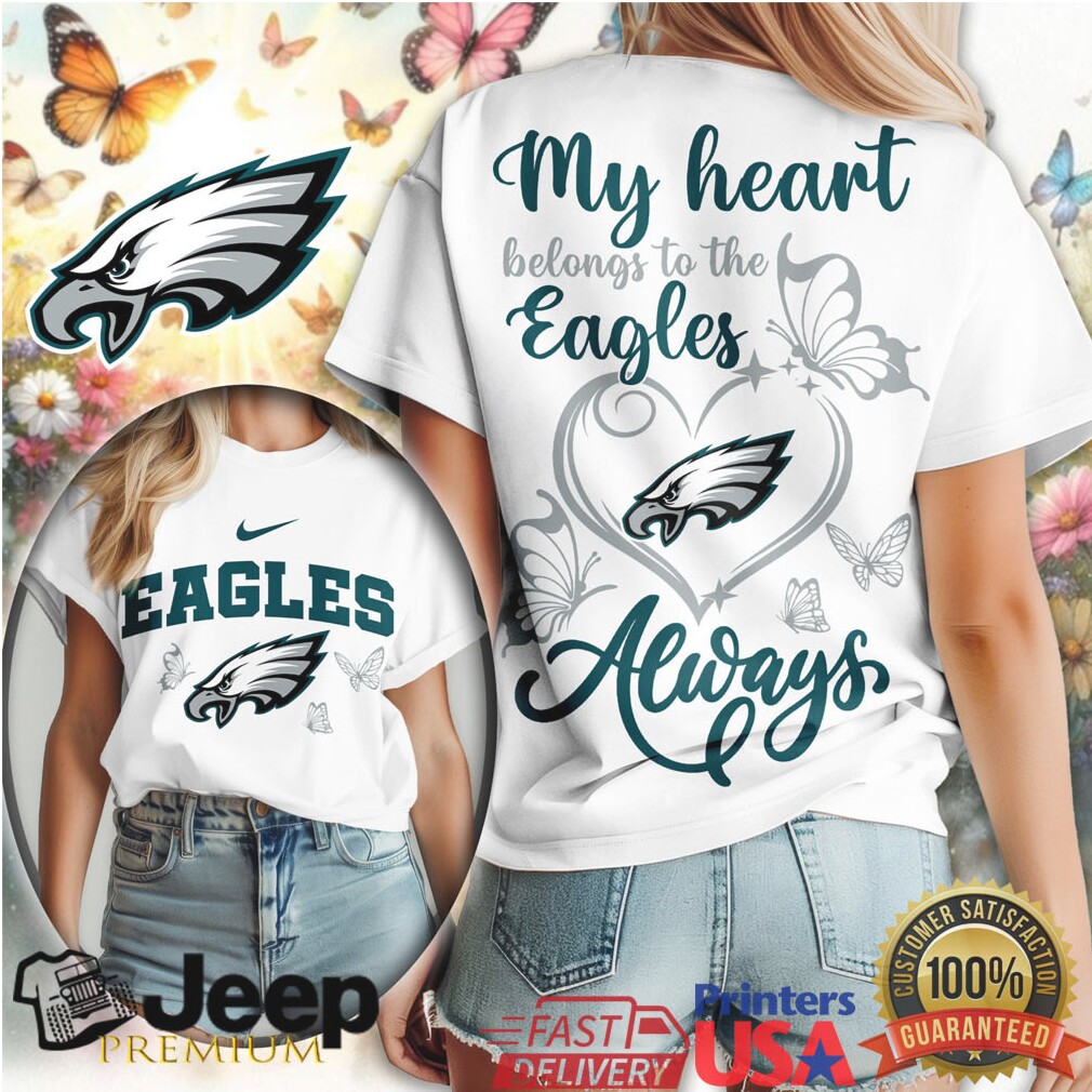 👕 About Philadelphia Eagles My Heart Belongs To The Eagles Always Butterfly T Shirt