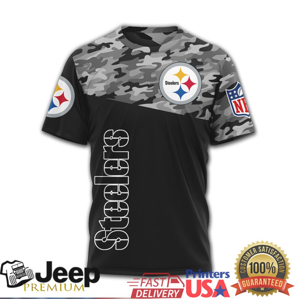 Here we go — for veterans! This Pittsburgh Steelers camo graphic tee champions the ’22 a Day — Veteran Lives Matter’ cause in bold black and gold. For Steel Curtain fans who bring the same iron resolve to advocating for veterans as they do to rooting for the Steelers.