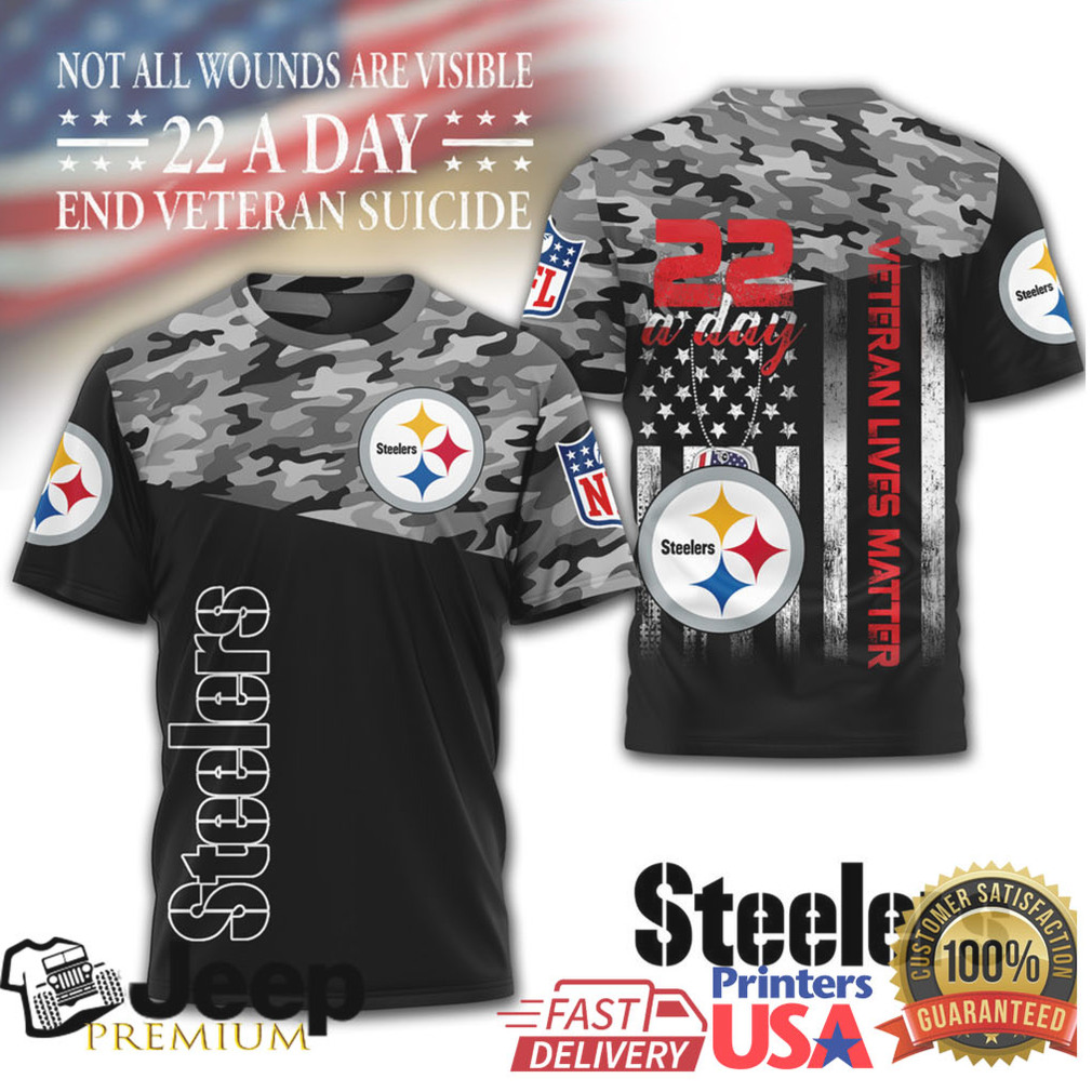 👕 About Pittsburgh ST Shirtlers NFL Veteran Lives Matter 22 A Day Camo Graphic T Shirt