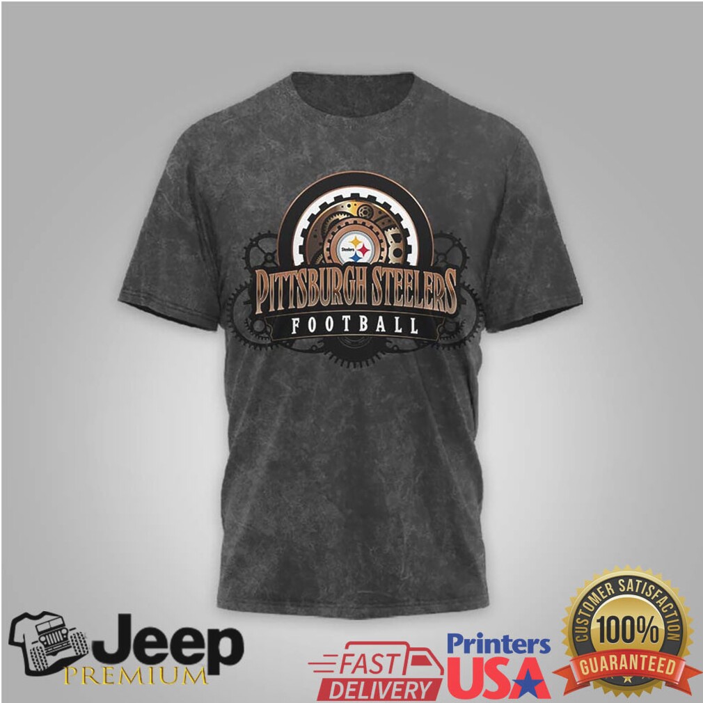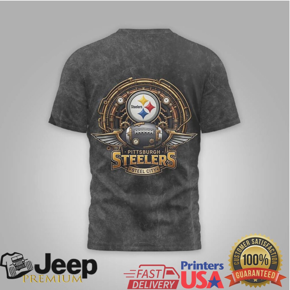 Gear up in style with this bold Pittsburgh Steelers Steampunk Mechanical T-Shirt! Featuring an intricate vintage-inspired design with gears, cogs, and mechanical wings fused with the team’s iconic logo, this graphic tee is a must-have for fans who love art-meets-football. Vintage wash finish for a worn-in, classic look. Unisex sizing available.