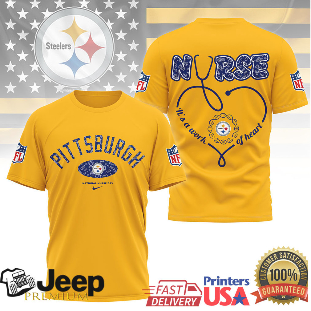 (Pittsburgh Steelers Nurse Appreciation “Work of Heart” Stethoscope T Shirt)Pittsburgh Steelers Nurse Appreciation “Work of Heart” Stethoscope T Shirt, Treat yourself or make a great gift for your loved ones