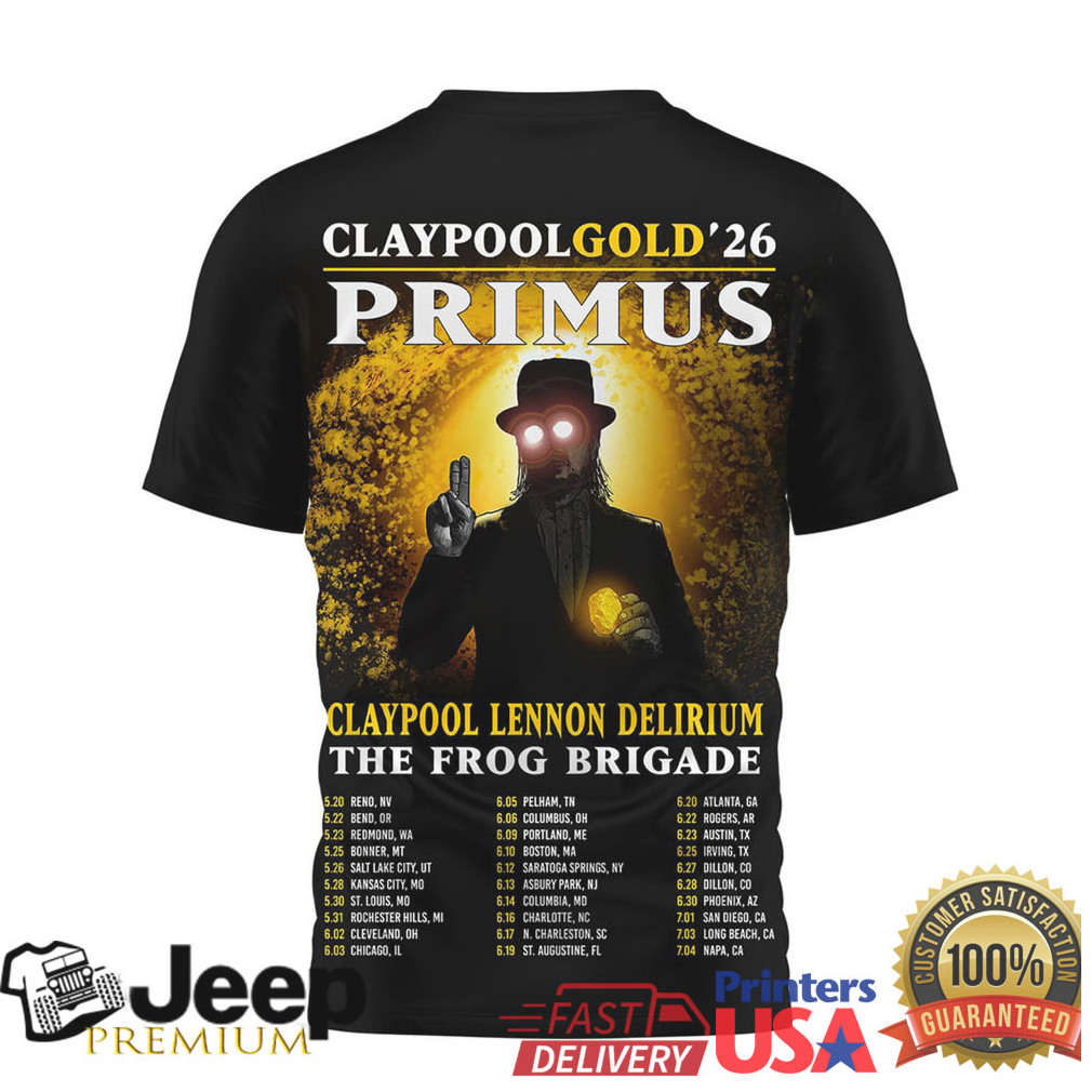 👕 About Primus Claypool Gold 2026 Frog Brigade Tour T Shirt Gold Edition