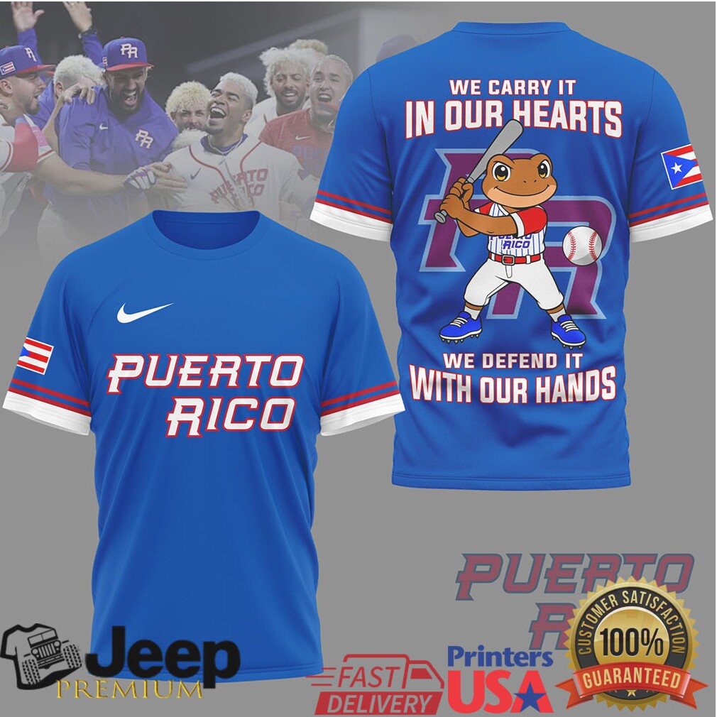 ()Puerto Rico Baseball “We Defend It With Our Hands” Coqui Frog Mascot T Shirt, Treat yourself or make a great gift for your loved ones
