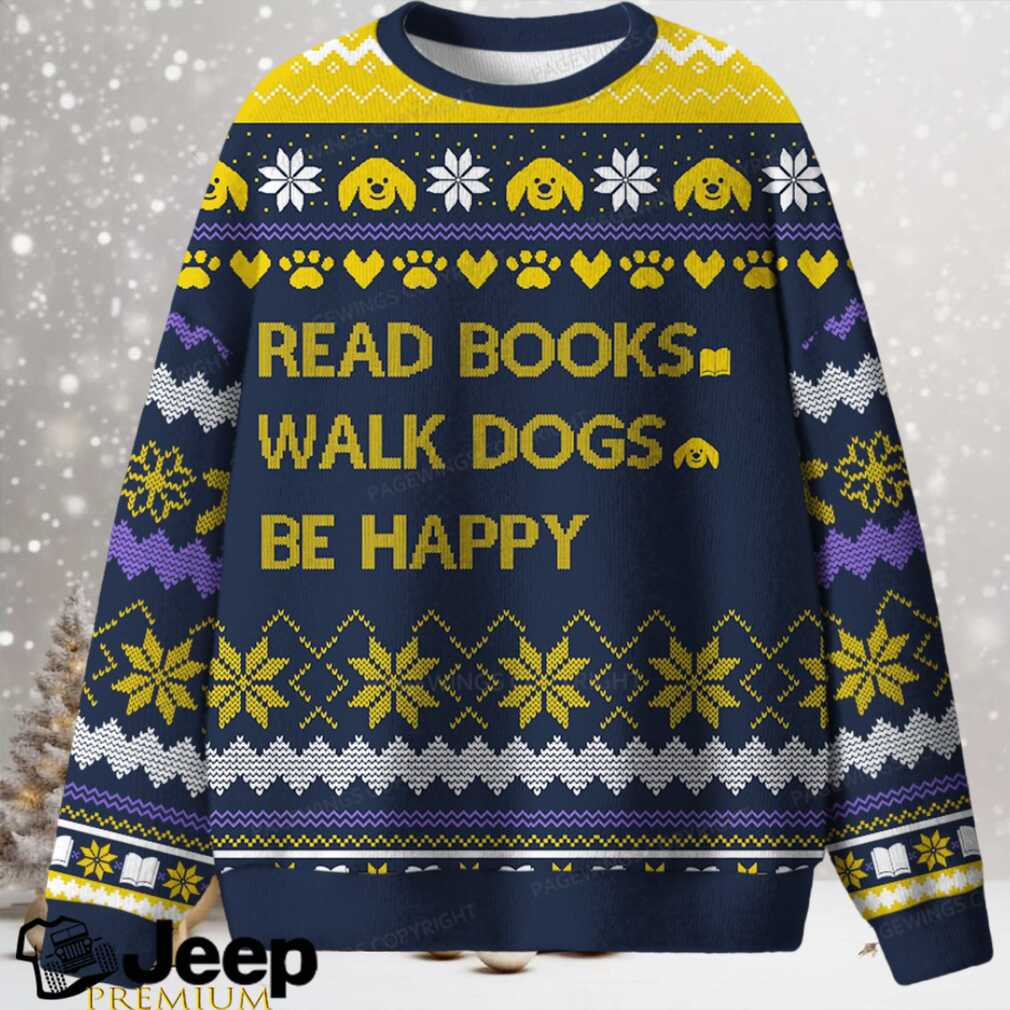 👕 About Read Books Walk Dogs Be Happy Unisex Ugly Knit Sweatshirt