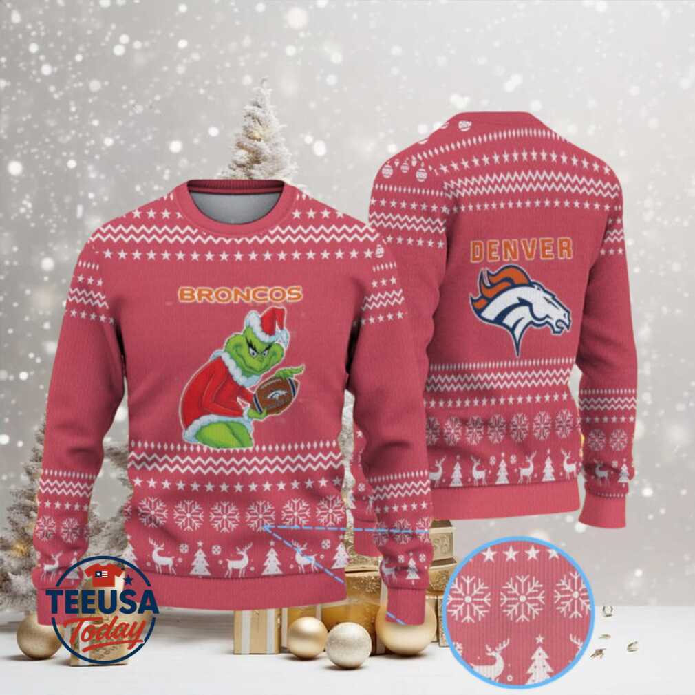 Who Rocks This Red Denver Broncos Grinch Ugly Christmas Sweater Best