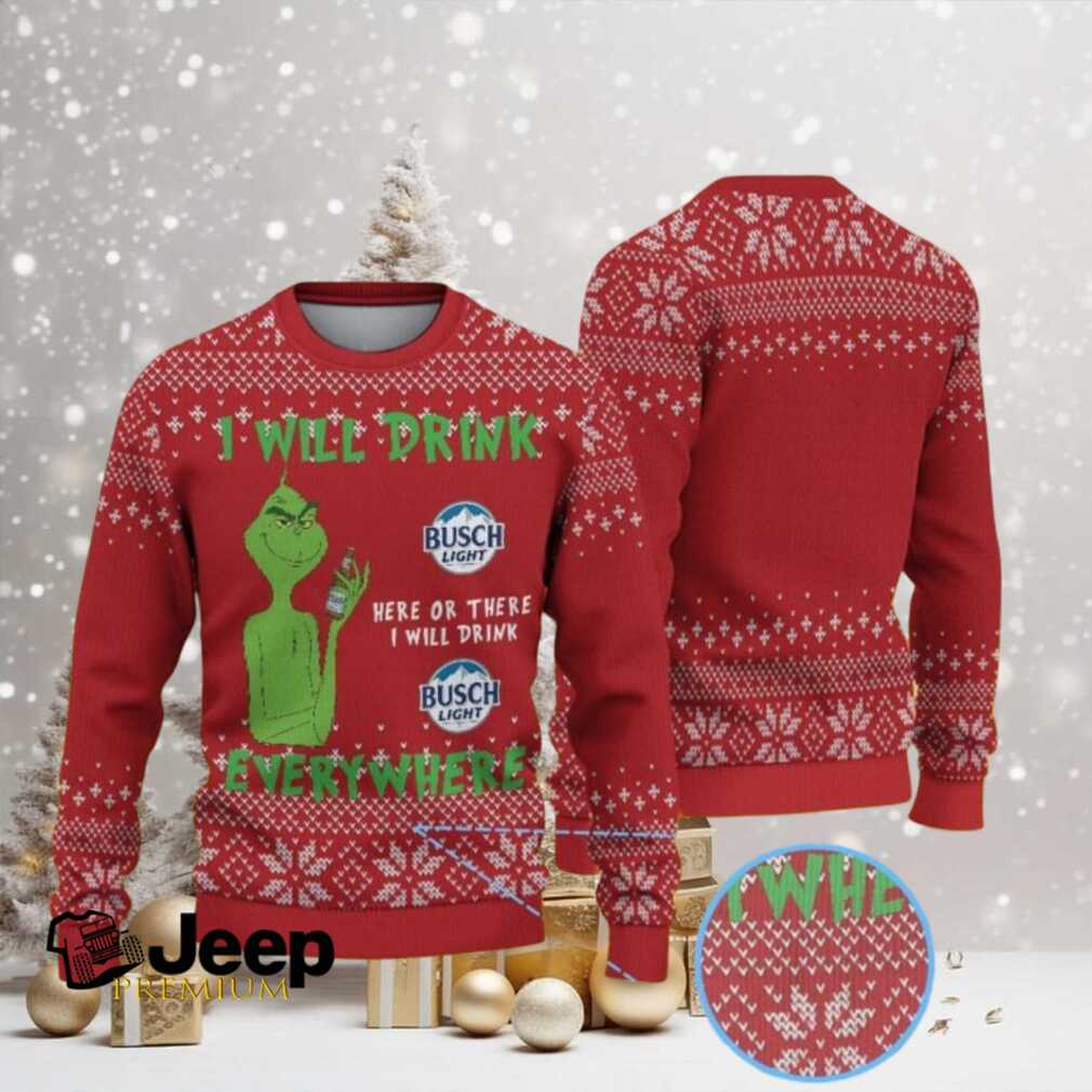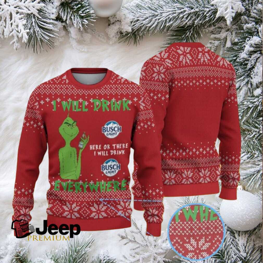 What Makes This Red Grinch Busch Light Ugly Christmas Sweater Epic