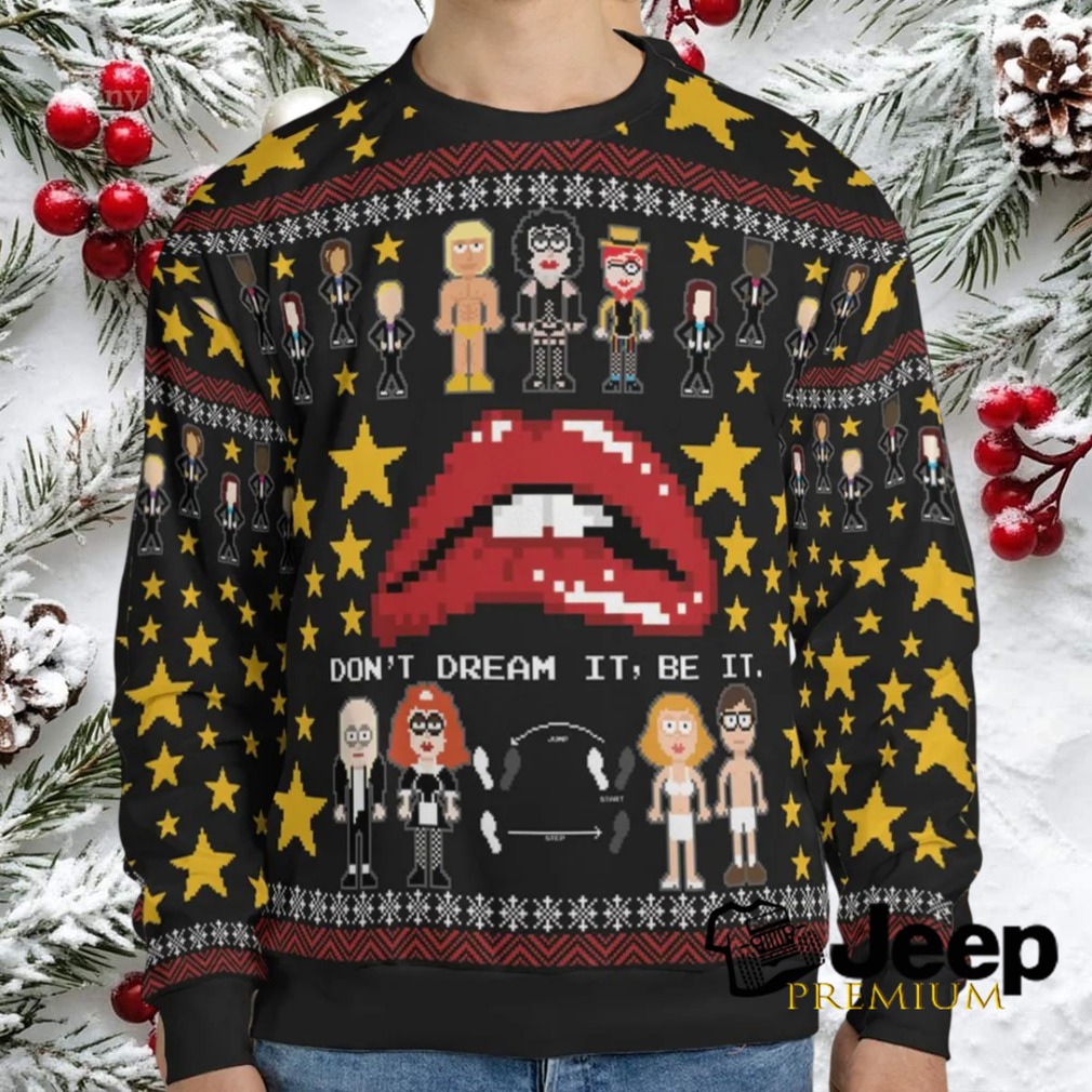 Are you ready to do the “Time Warp” into the holiday season with a twist? This Rocky Horror Pixel Party Ugly Christmas Sweatshirt takes your festive attire to a whole new dimension. Perfect for those who crave a holiday look that’s anything but ordinary, it blends the iconic cult classic with a fun, retro pixel art vibe. If you’re tired of predictable sweaters and want to showcase your unique style, this sweatshirt is your ticket to a truly unforgettable Christmas party entrance.