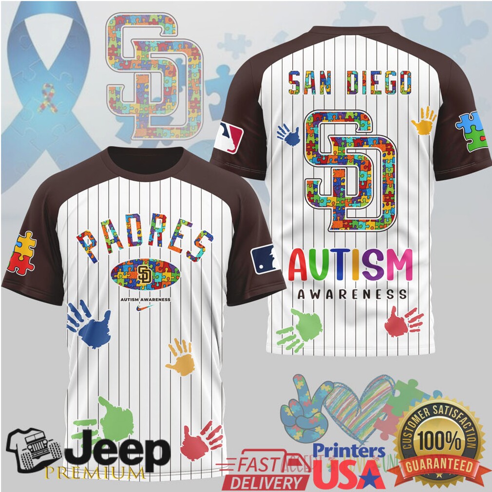 Show your support and team pride with this San Diego Padres Pinstripe Baseball Autism Awareness tee. Featuring the beloved puzzle piece pattern in vibrant team colors, this shirt spreads awareness with style. A meaningful way to celebrate inclusivity while cheering on your favorite baseball team — wear it to the game and start a conversation that matters.