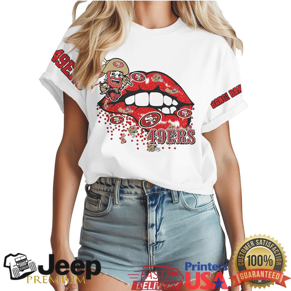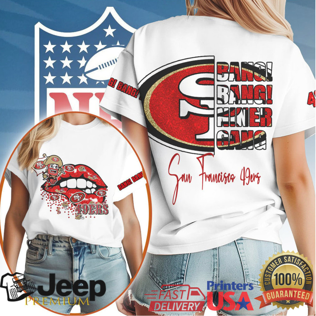 (San Francisco 49ers Bang Bang Niner Gang Glitter Lips Fan T Shirt)San Francisco 49ers Bang Bang Niner Gang Glitter Lips Fan T Shirt, Treat yourself or make a great gift for your loved ones