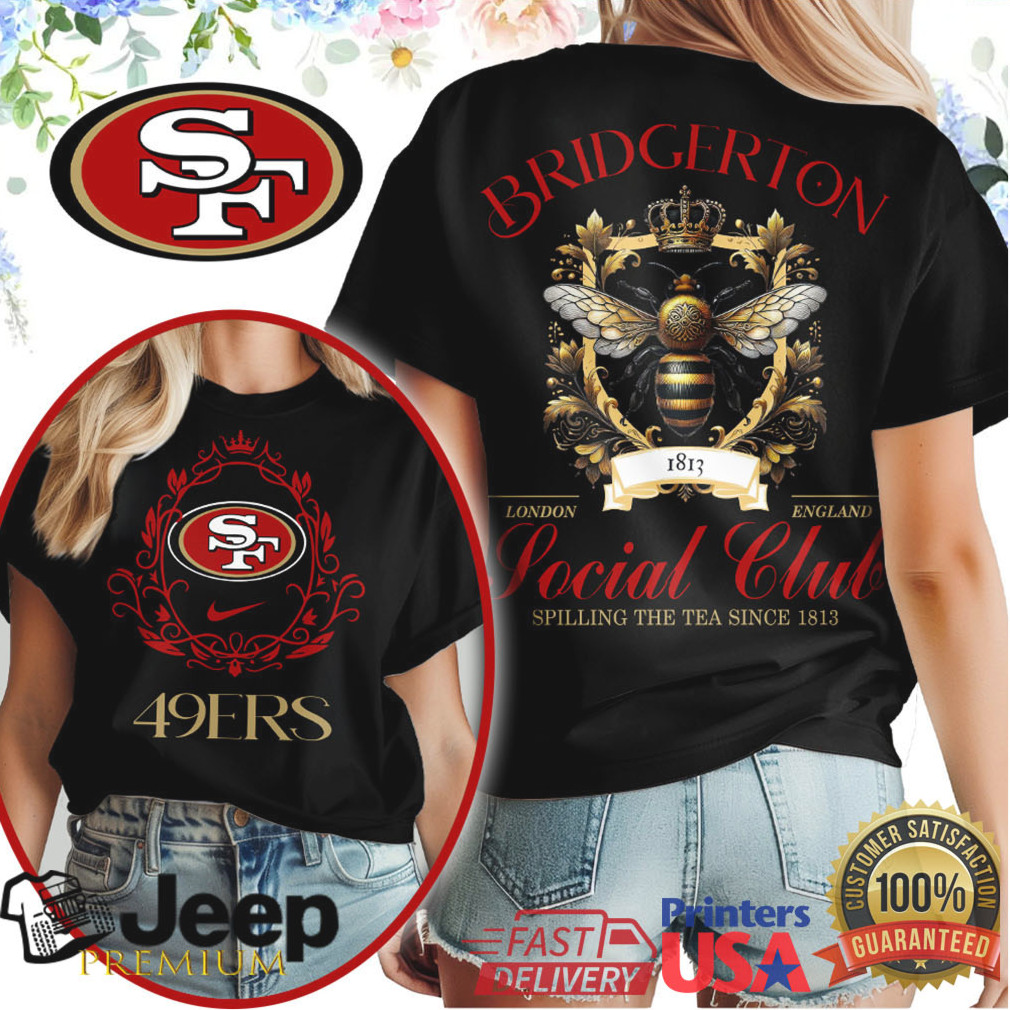 (San Francisco 49ers Bridgerton Social Club Spilling The Tea Graphic T Shirt)San Francisco 49ers Bridgerton Social Club Spilling The Tea Graphic T Shirt, Treat yourself or make a great gift for your loved ones