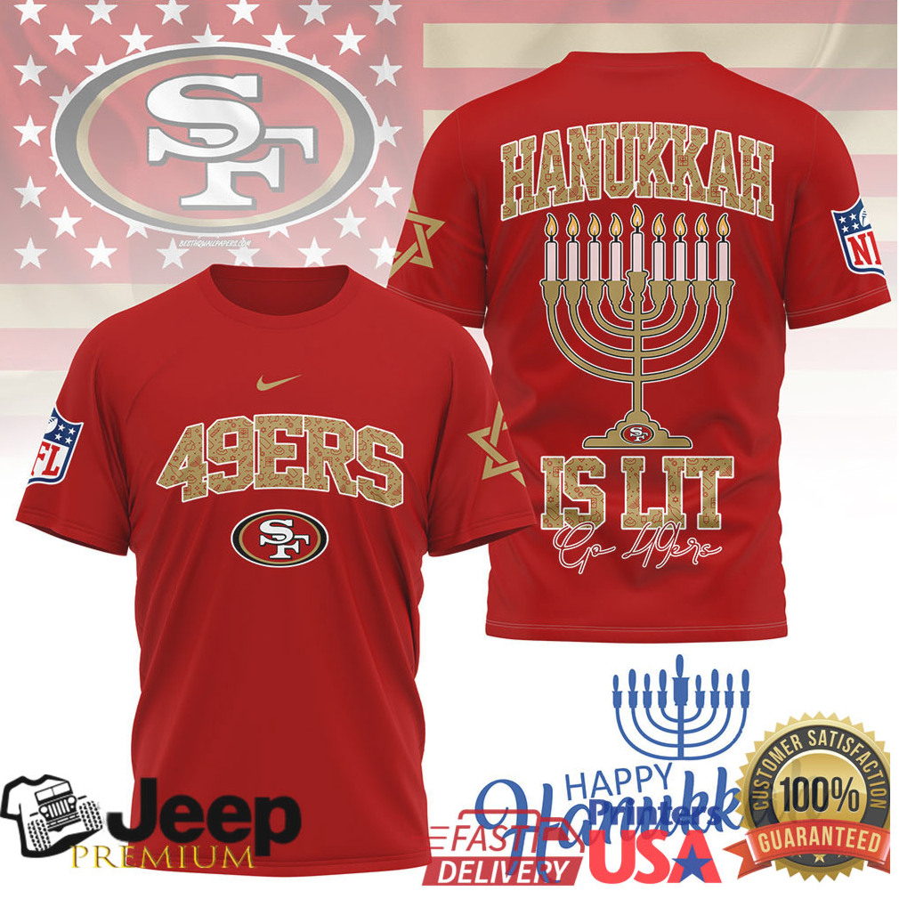 (San Francisco 49ers Hanukkah Is Lit Menorah T Shirt)