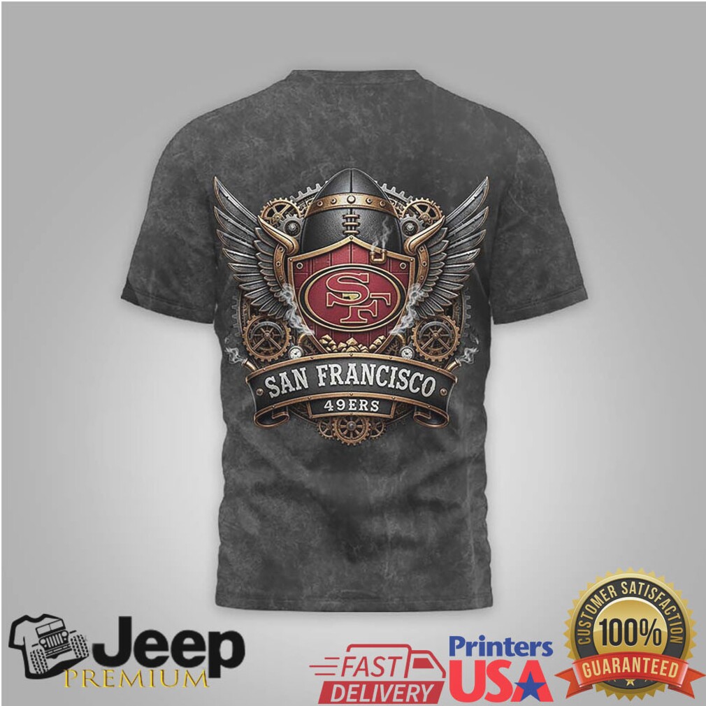 (San Francisco 49ers Steampunk Shield & Wings Football Vintage Wash T Shirt)