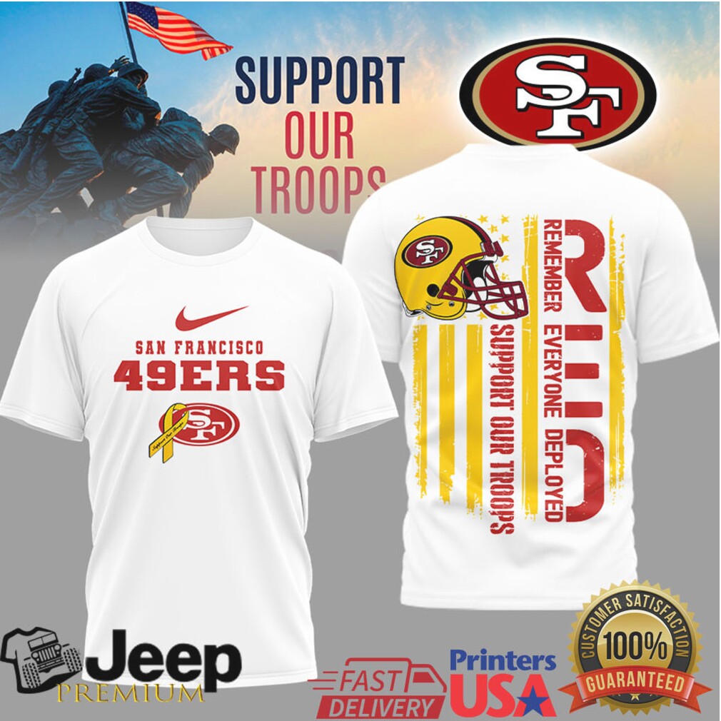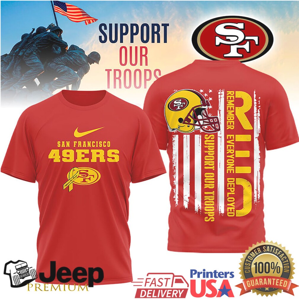 👕 About San Francisco 49ers Support Our Troops RED Remember Everyone Deployed T Shirt