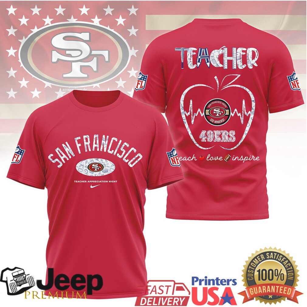(San Francisco 49Ers Teacher Appreciation Teach Love Inspire Shirt)San Francisco 49Ers Teacher Appreciation Teach Love Inspire Shirt, Treat yourself or make a great gift for your loved ones