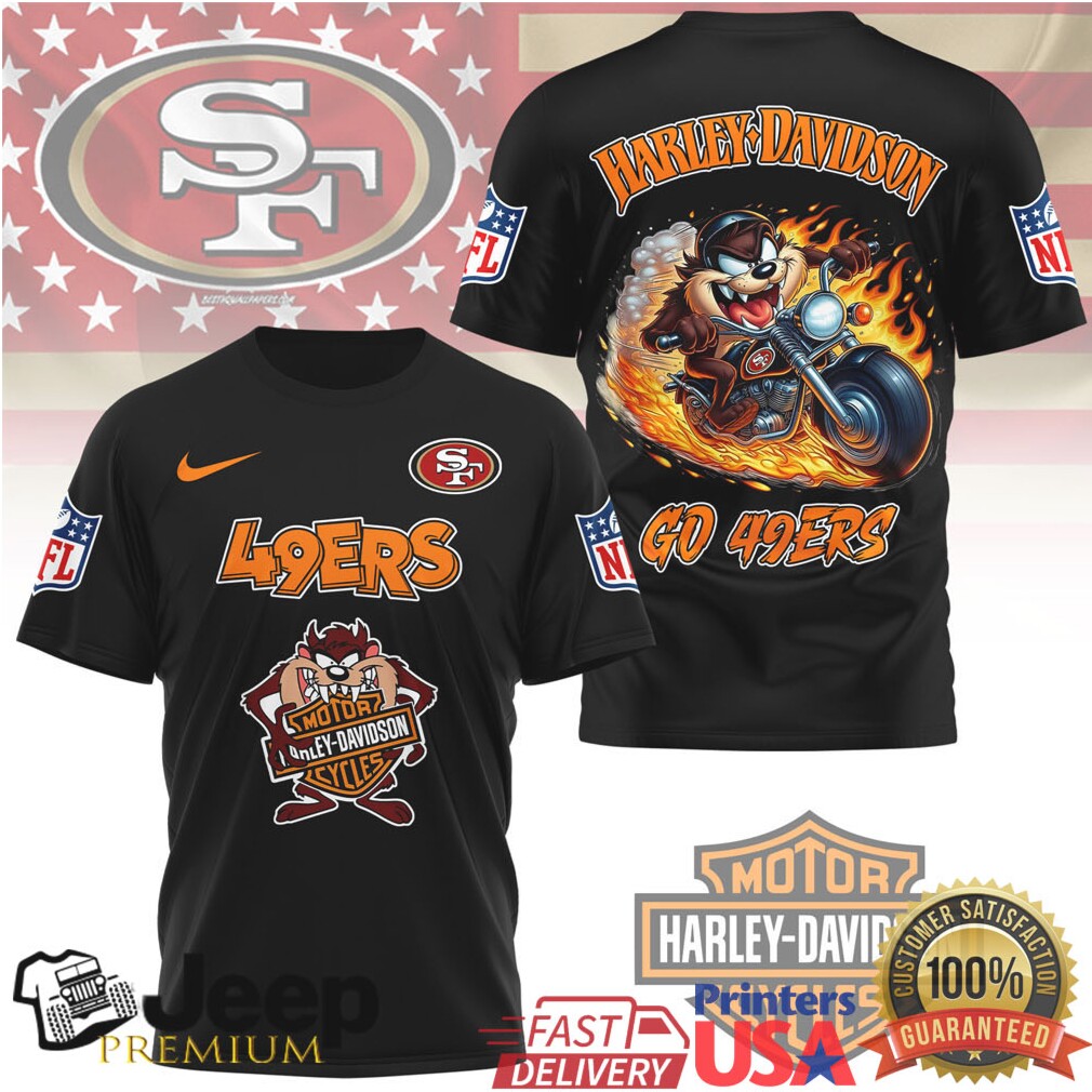 ()San Francisco 49ers x Harley Davidson Taz Motorbike NFL Mashup T Shirt, Treat yourself or make a great gift for your loved ones