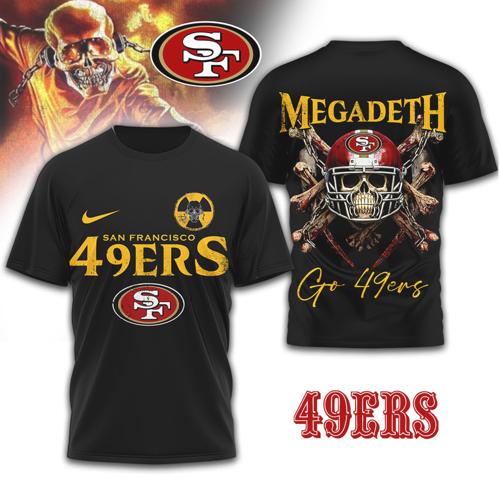 ()San Francisco 49ers x Megadeth Vic Rattlehead Collaboration Black T Shirt, Treat yourself or make a great gift for your loved ones