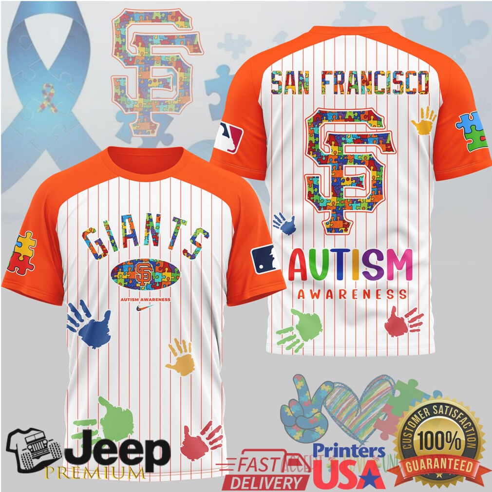 👕 About San Francisco Giants Autism Awareness Puzzle Pieces Baseball Jersey T Shirt