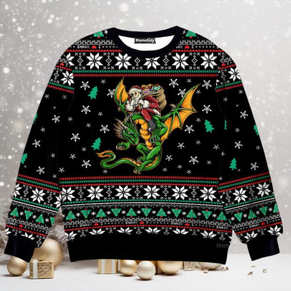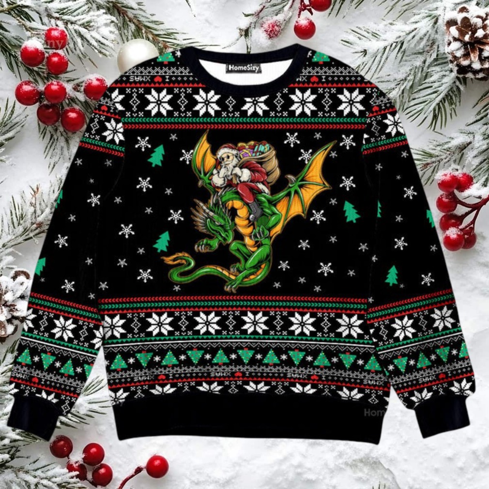 What Makes This Santa’s Dragon Sleigh Ride Ugly Christmas Sweater Epic
