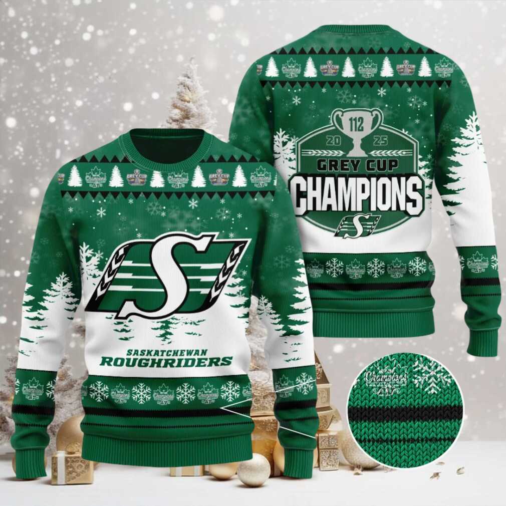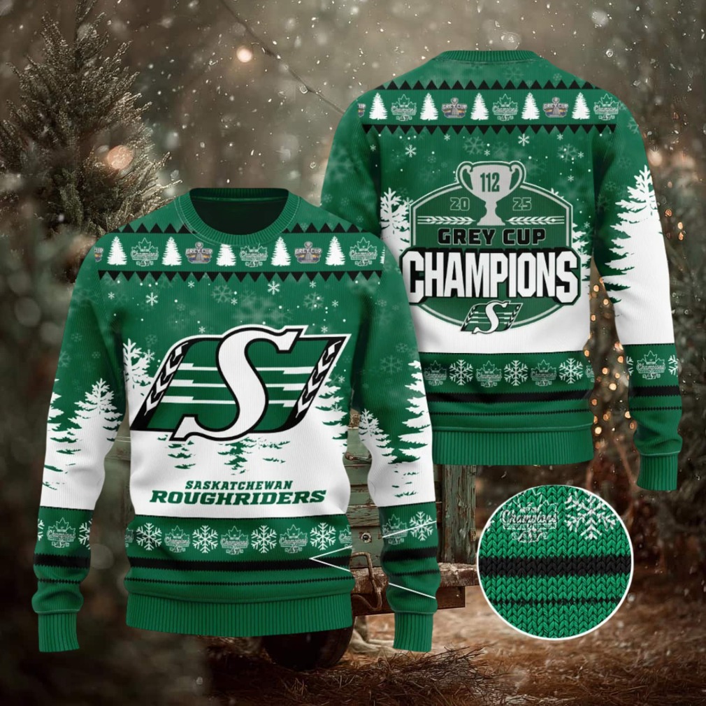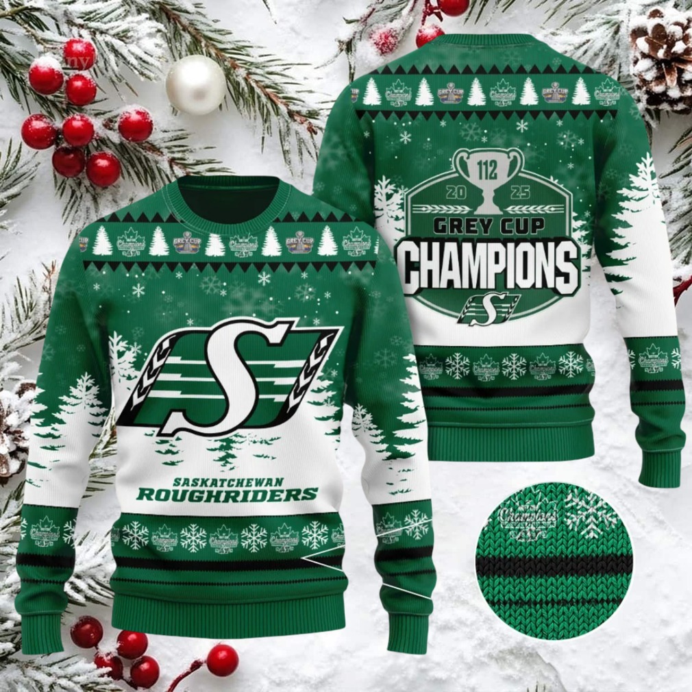 👕 About Saskatchewan Roughriders 2025 Grey Cup Champions Ugly Christmas Sweateer