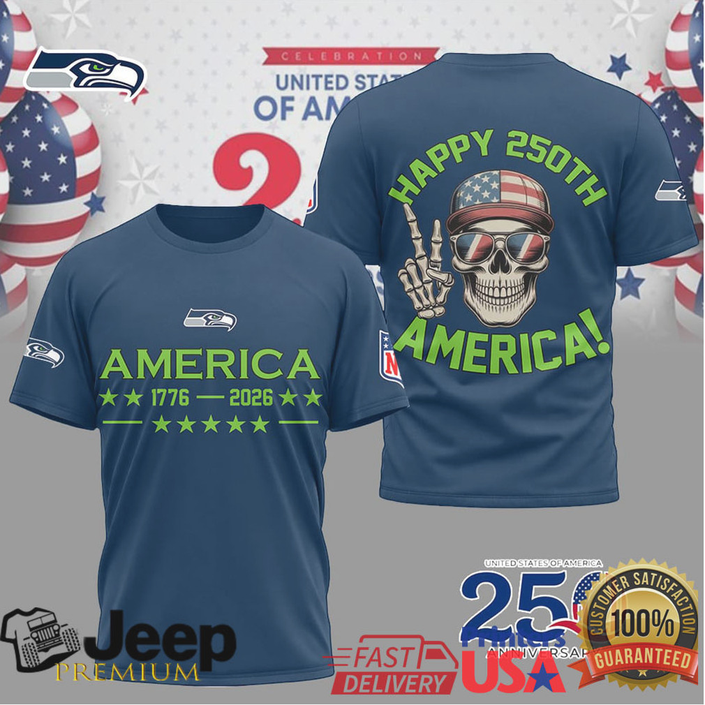 (Seattle Seahawks America 250th Anniversary Patriotic Skull Navy T Shirt)Seattle Seahawks America 250th Anniversary Patriotic Skull Navy T Shirt, Treat yourself or make a great gift for your loved ones
