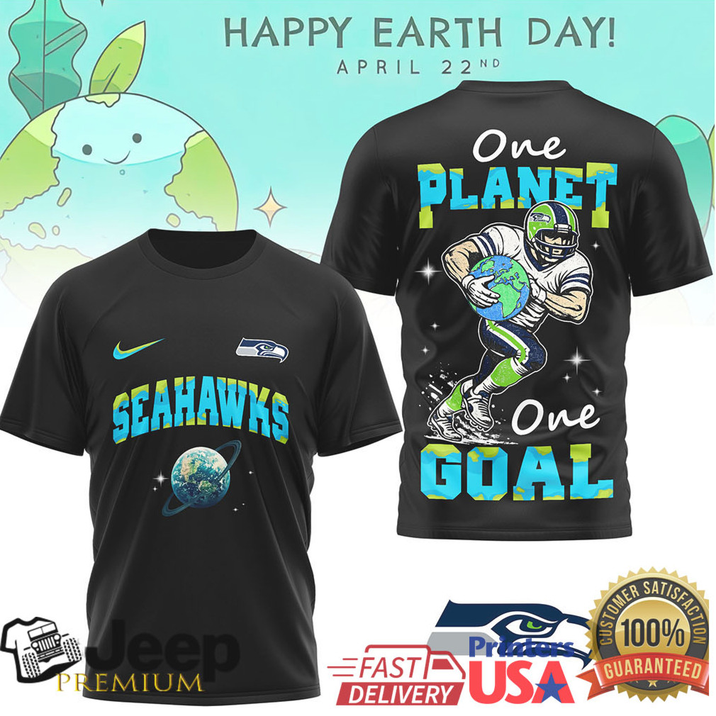 ()Seattle Seahawks Earth Day One Planet One Goal Graphic Print Black T Shirt, Treat yourself or make a great gift for your loved ones