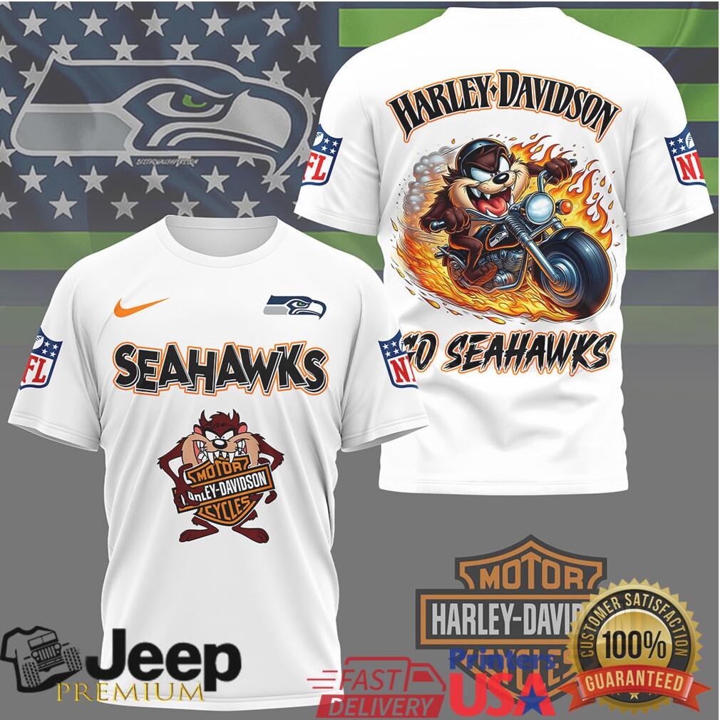 ()Seattle Seahawks Harley Davidson x Taz Looney Tunes Graphic T Shirt, Treat yourself or make a great gift for your loved ones