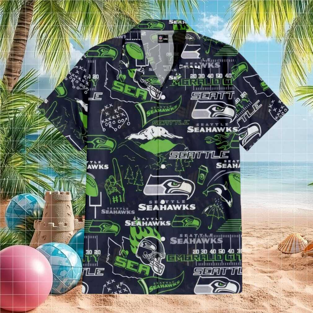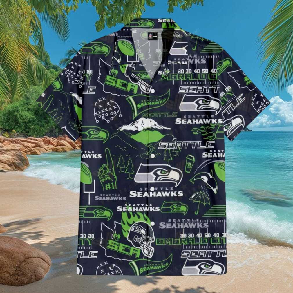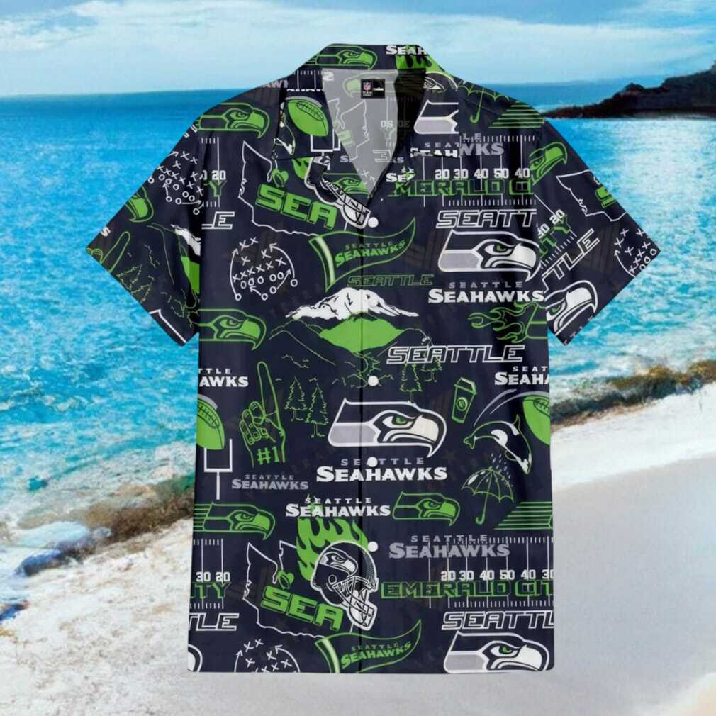 Seattle Seahawks NFL “Emerald City” Hawaiian Shirt Navy Blue Icon Collage, Treat yourself or make a great gift for your loved ones