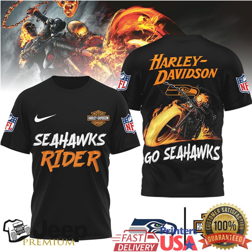 Seattle Seahawks Official NFL Ghost Rider Harley Davidson 3D Shirt, Sport Hoodie and Sport Shirt