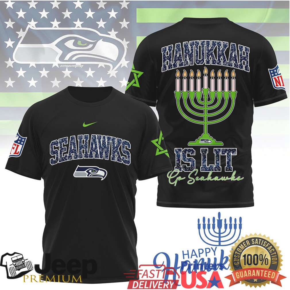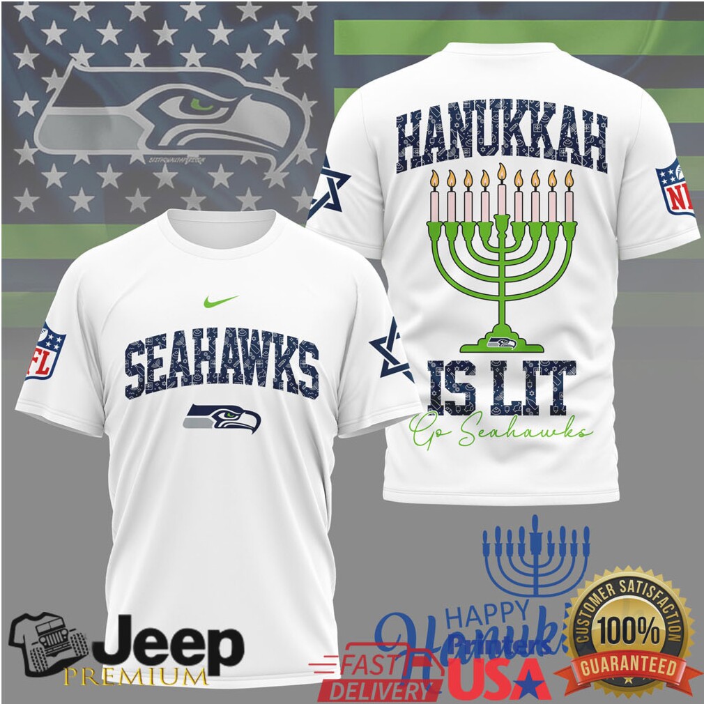 ()Seattle Seahawks Official NFL Happy Hanukkah 3D Shirt, Treat yourself or make a great gift for your loved ones
